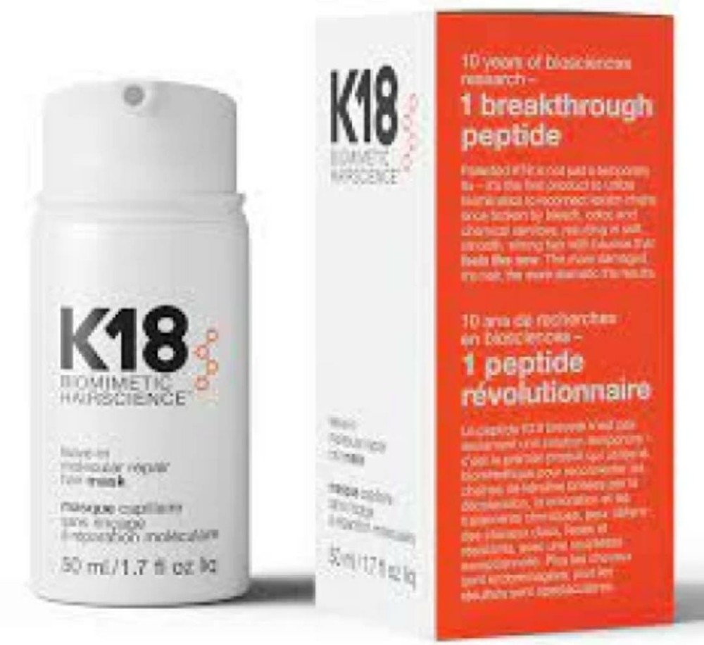 K18Peptide : وهي تقنية حاصلة على براءة اختراع تعمل على إعادة ربط الروابط الكيميائية المكسورة في الشعر.