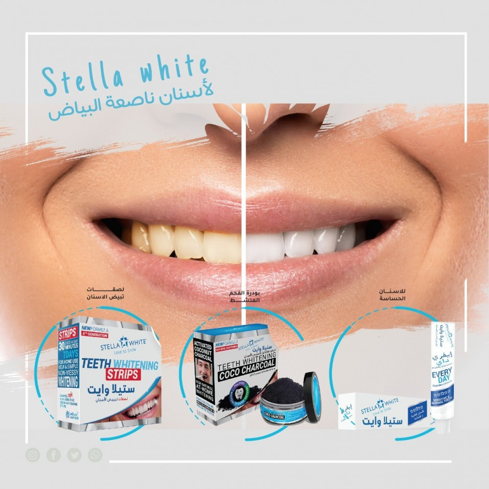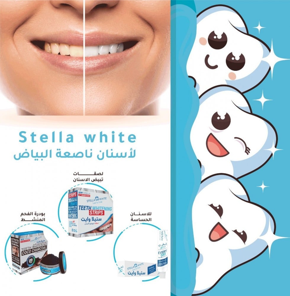لاصقات ستيلا وايت لتبيض الاسنان لمن يعانون من مشاكل فى لون الاسنان أو اصفرارهم فهى طريقة سهلة ومريحة لتبيض ابتسامتك دون التسبب فى ألم وحساسية.