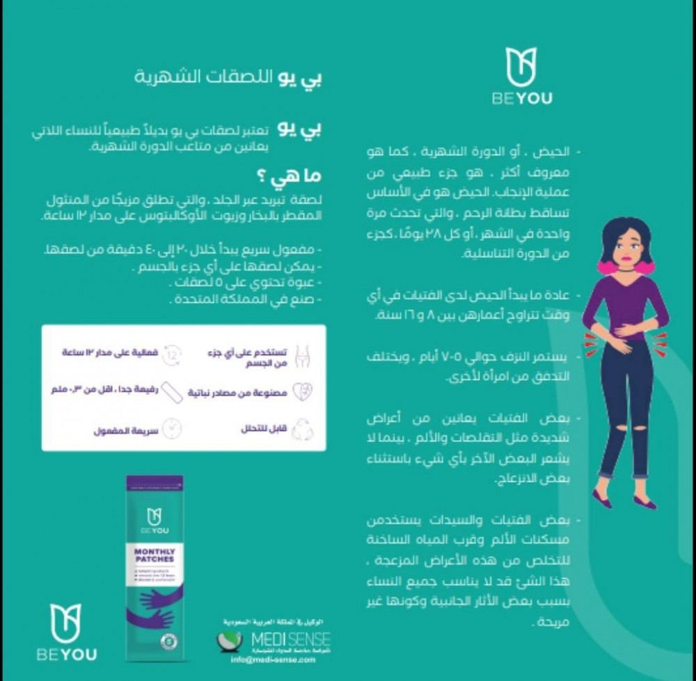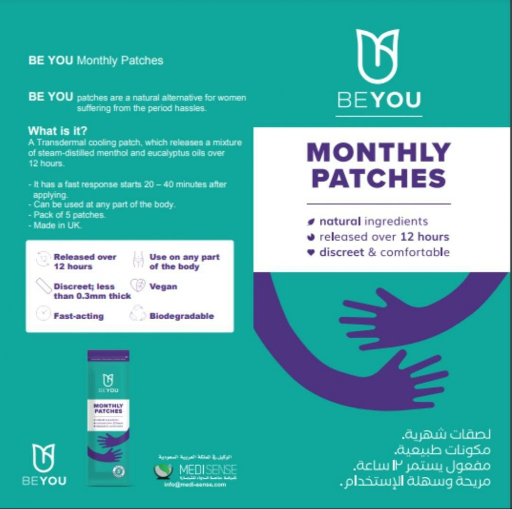 لصقات شهرية لتقلصات الدور الشهرية المؤلمة طبيعية وراحة لمدة 12 ساعة من بي يو _ 5 لصقات BEyou