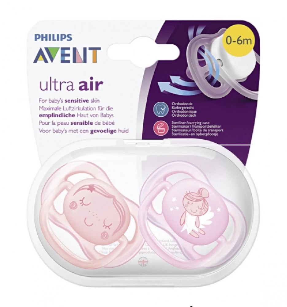 تتميز لهاية Philips Avent Ultra Air بحلمات قابلة للطي ومسطحة على شكل قطرة تمت الموافقة عليها لصحة فم الأطفال. الحلمة متناظرة ، لذا يناسب فم الطفل تمامًا في كل مرة ، حتى لو كانت اللهاية مقلوبة رأسًا على عقب. اللهاية مصنوعة من السيليكون ، وهي خالية من الطعم والرائحة ، لذا من المرجح أن يقبلها طفلك. للاسترجاع من الطفل ، تتميز مصاصة Avent بمقبض حلقي قوي.