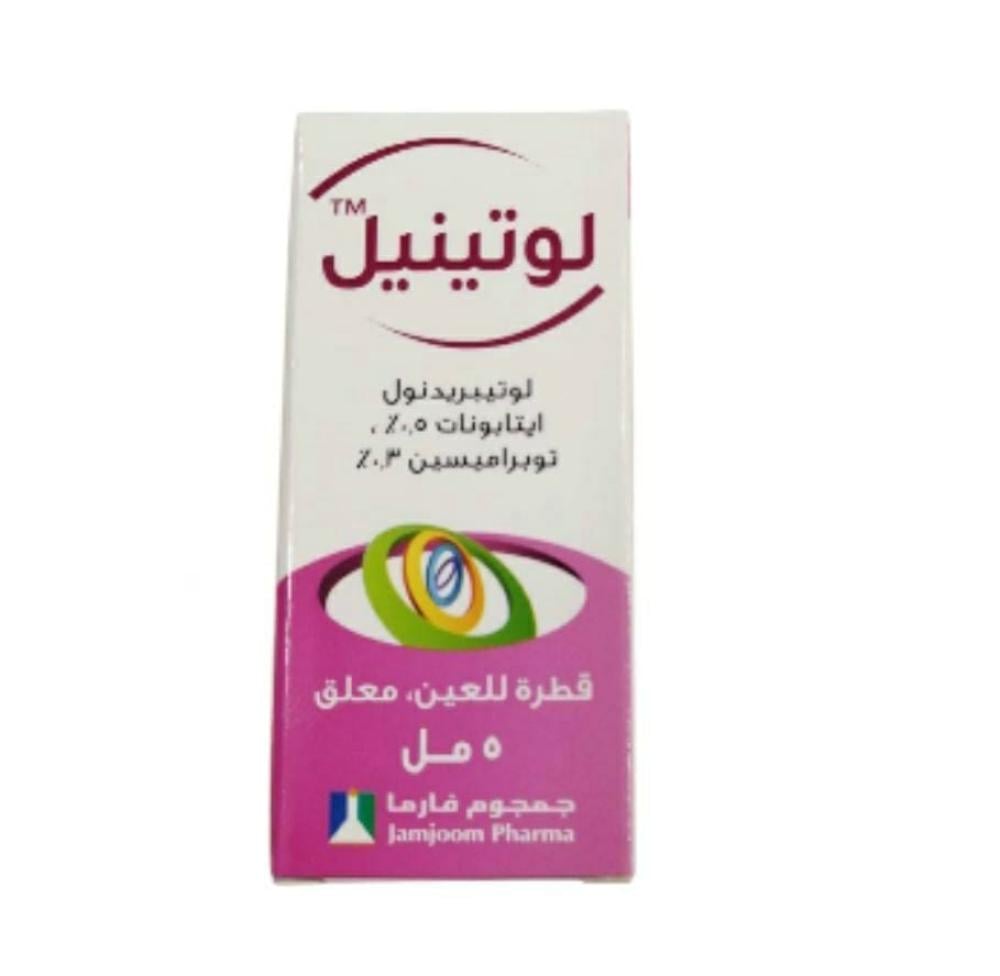 هذا المنتج هو "لوتينيل" (Lutenil)، وهي قطرة للعين معلقة بحجم 5 مل من إنتاج جمجوم فارما.