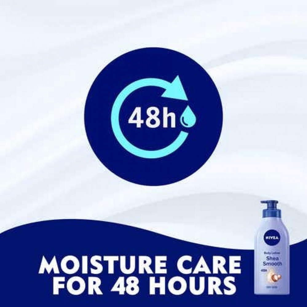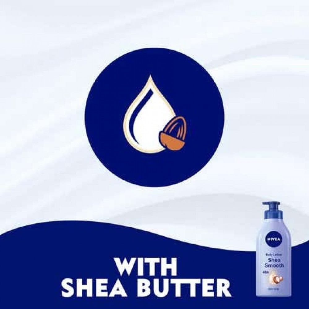 لوشن الجسم من نييا بزبدة الشيا هو تركيبة تنعيم خاصة توفر 48 ساعة من العناية بالترطيب للحصول على بشرة أكثر نعومة بشكل ملحوظ ، بعد تطبيق واحد فقط.