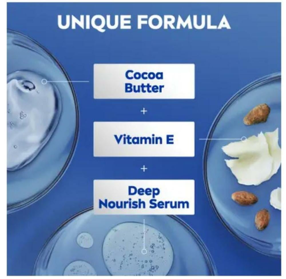 ماء، جلسرين، ألكان C15-19، كحول سيتريل، سائل البارافين، بالميتات الأيزوبروبيل، ستيرات الجلسرين SE، زبدة بوتيروسبيرموم باركي، دايميثيكون، ستيرات الجلسرين، زبدة بذور ثيوبروما كاكاو، زيت جوز الهند، كبريتات سيتريل الصوديوم، ثلاثي الصوديوم EDTA، أسيتات توكوفيرول، كربومير، هيدروكسيد الصوديوم، إيثيل هكسيل جلسرين، فينوكسي إيثانول، لينالول، كحول البنزيل، الكومارين، BHT، العطر.