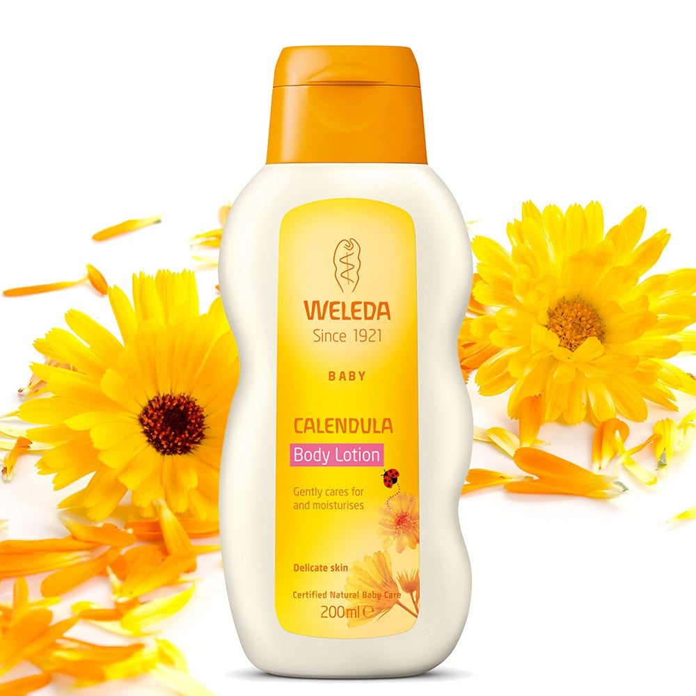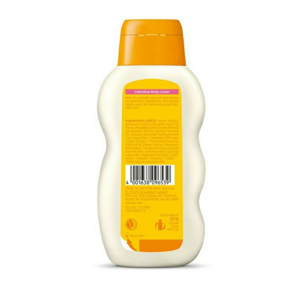 فيليدالوشن الجسم للأطفال بالكالينديولا للعناية بالبشرة وترطيبها بلطف 200 مل WELEDA CALENDULA BODY LOTION لترطيب وحماية وتجديد البشرة الحساسة بعد الاستحمام أو تنظيفها وتغذيتها. يمتص قوامه اللبني بسرعة.