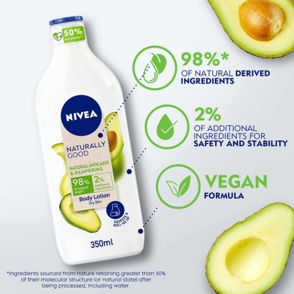 يحتوي لوشن الجسم Nivea Natural Avocado Pampering Body Lotion على مستخلصات الأفوكادو الطبيعية ويوفر ترطيبًا عميقًا لمدة تصل إلى 48 ساعة. يعمل لوشن الجسم هذا للبشرة الجافة على ترطيب بشرتك بشكل فعال للحصول على مظهر ناعم ومرطب وصحي.
