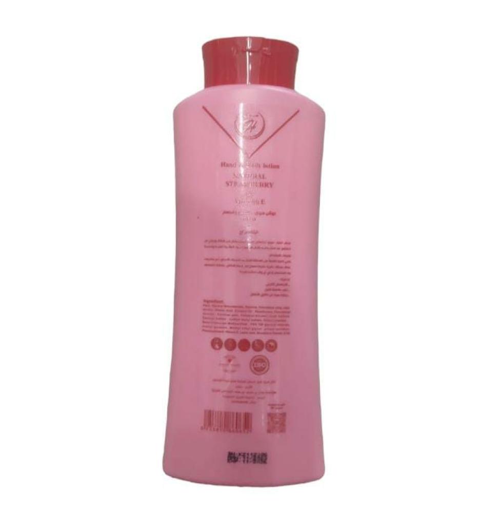 لوشن مبيض لليدين والجسم بالفراولة وفيتامين اي من كنوز اتش _ 700 مل