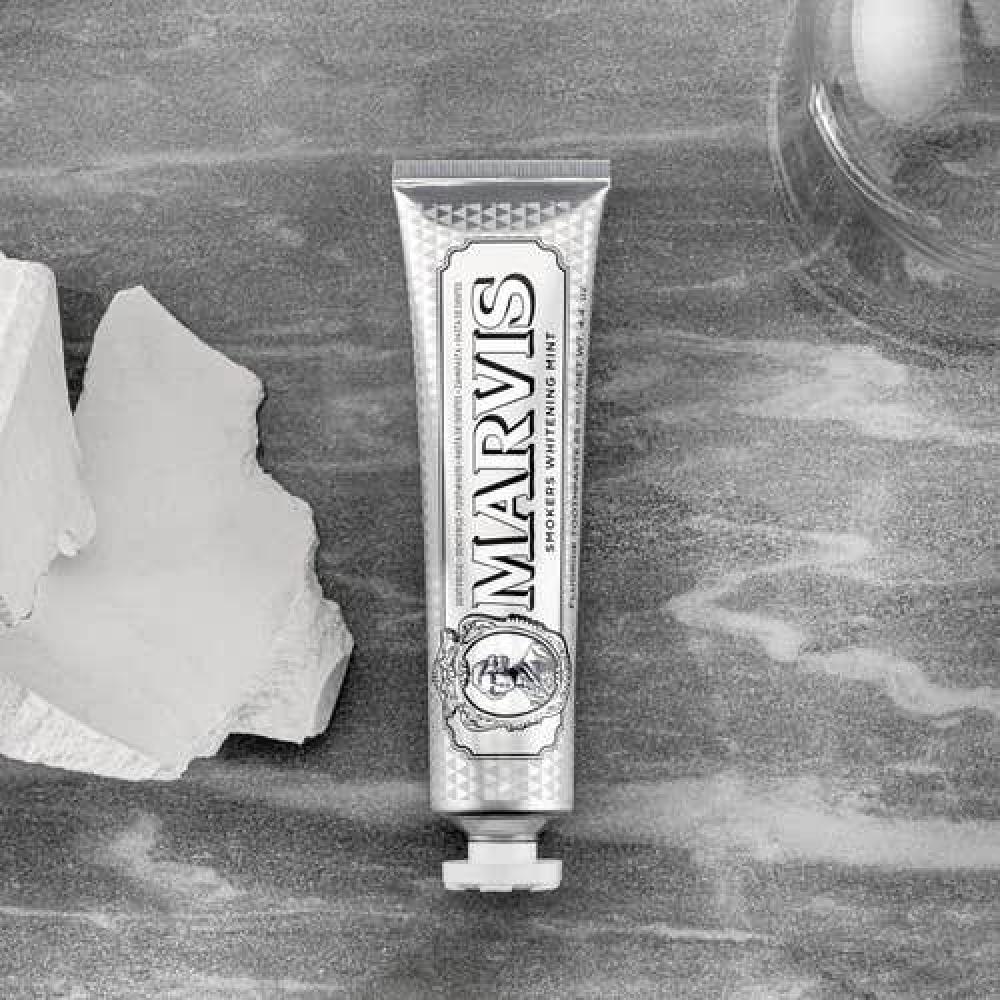 - معجون أسنان مبيّض الأسنان بالنعناع من مارفيس هو معجون أسنان ممتاز مصمم خصيصًا لمكافحة البقع العنيدة الناتجة عن التدخين والشاي والقهوة.
