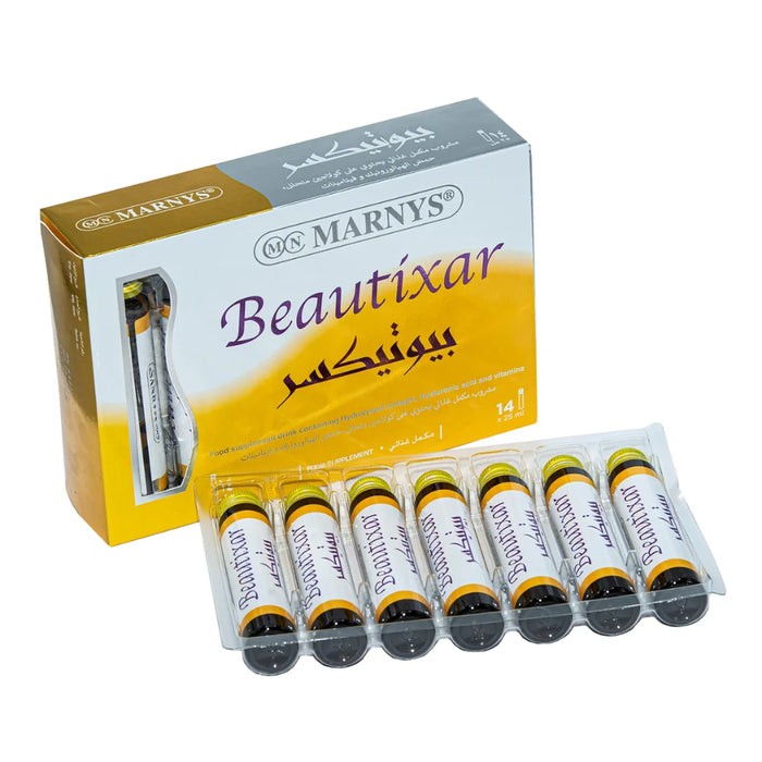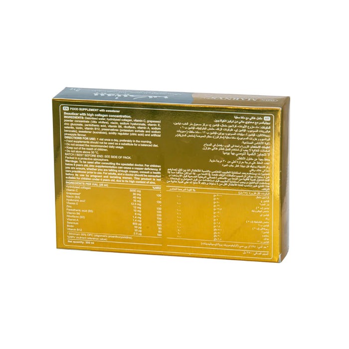 مارنيز بيوتي إن أوت إليكسير هو مكمل غذائي مصمم خصيصًا للحفاظ على نسيج البشرة ومظهرها الشبابي بفضل تضافر مكوناتها. إنه يعزز الجمال من الداخل إلى الخارج بمكونات محببة للبشرة. يساهم في التكوين السليم للكولاجين للقيام بالوظيفة الصحيحة للأوعية الدموية والعظام والغضاريف واللثة والجلد والأسنان. الاستخدام: قارورة واحدة مرة في اليوم ويفضل في الصباح.