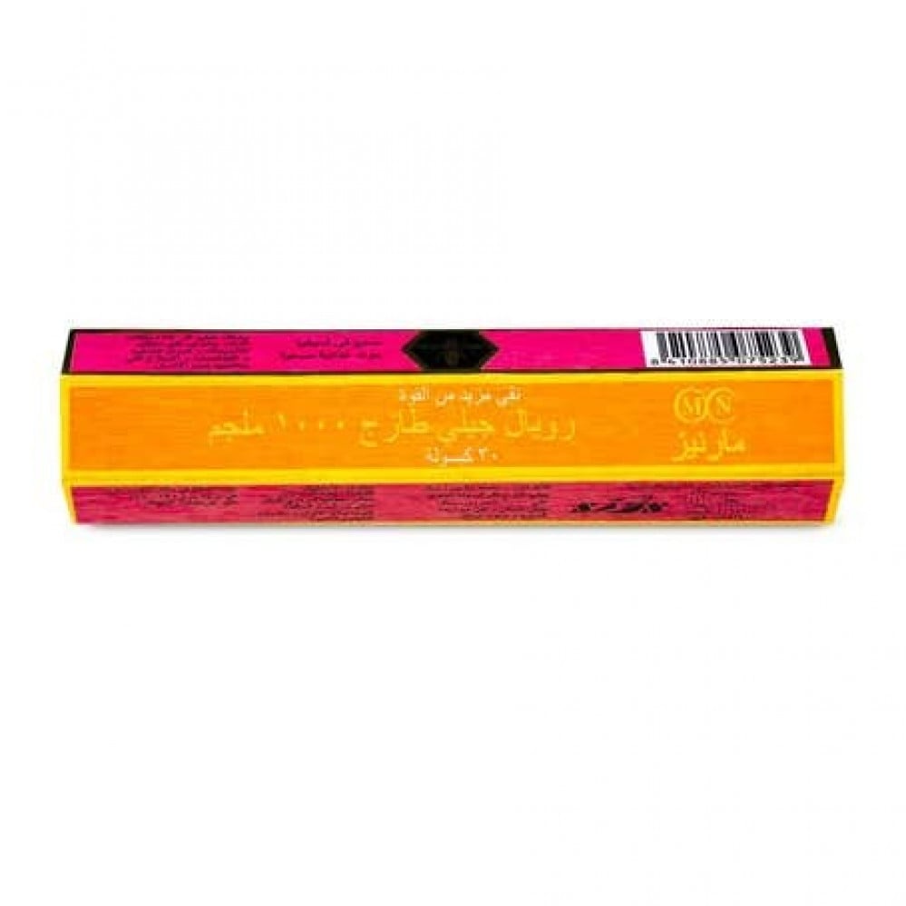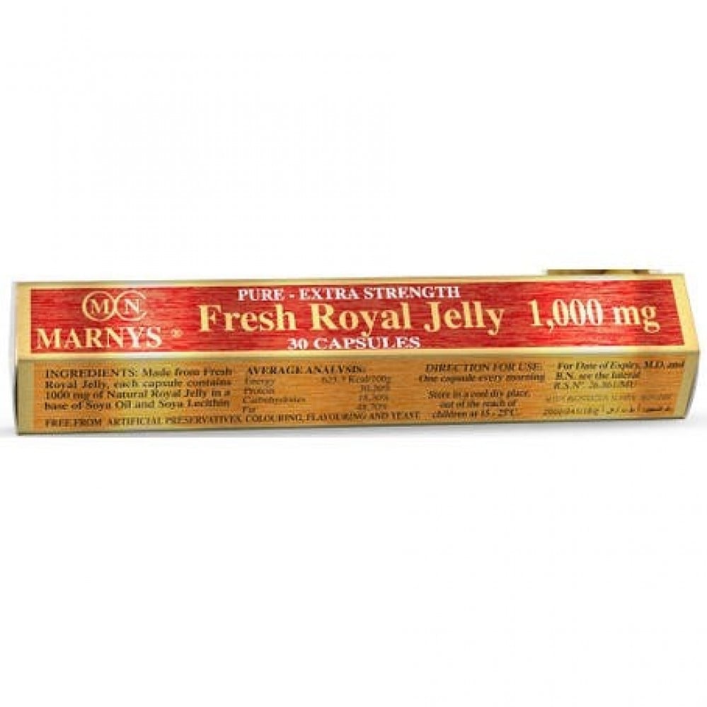 - كبسولات رويال جيل مارنيز ® 1000 مجم مصنوعة من رويال جيل طازج. كل منها يحتوي على 1000 مجم من غذاء ملكات النحل الطبيعي في قاعدة من زيت الصويا وليسيثين. يمنح رويال جيل مارنيز ® 1000 طاقة إضافية تعمل على زيادة القدرة على أداء الأنشطة البدنية والذهنية.