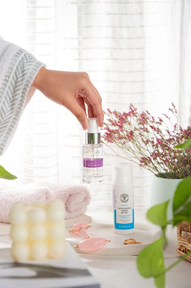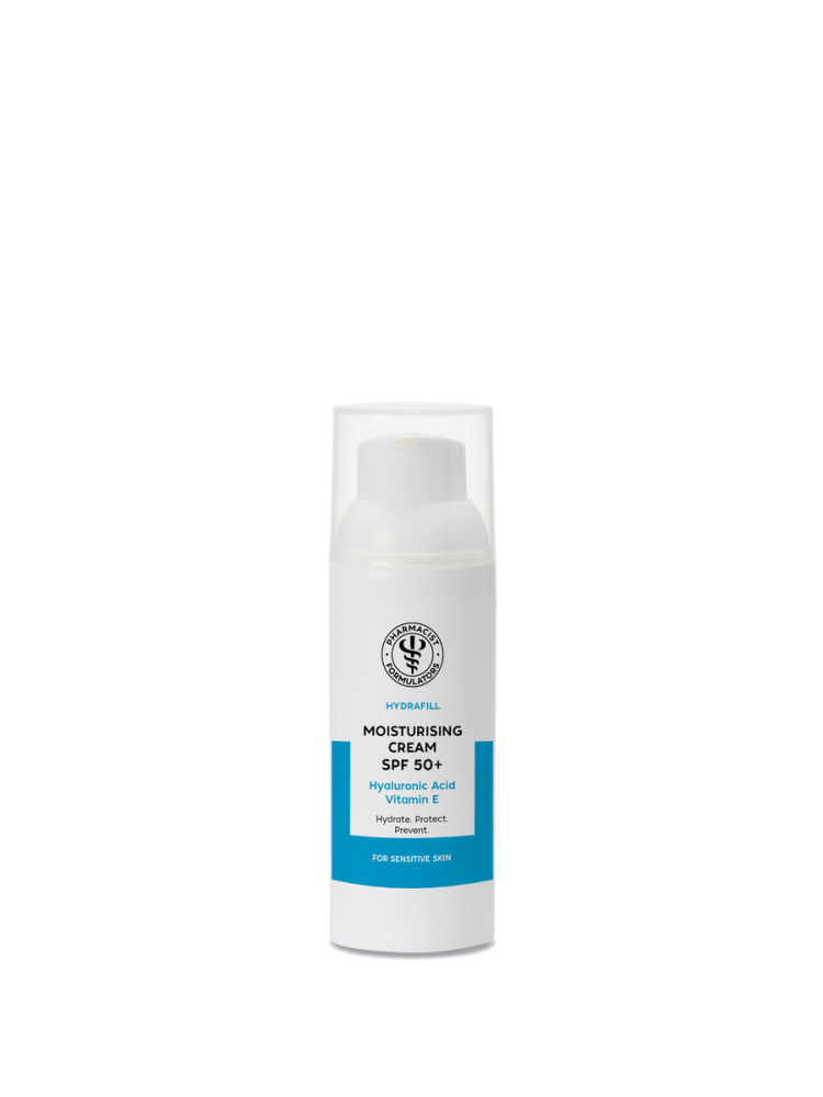4️⃣ الترطيب والحماية: ضعي Moisturising Cream SPF 50+ من Hydrafill، فهو يحتوي على حمض الهيالورونيك وفيتامين E، مما يوفر ترطيبًا عميقًا وحماية من أشعة الشمس في خطوة واحدة.