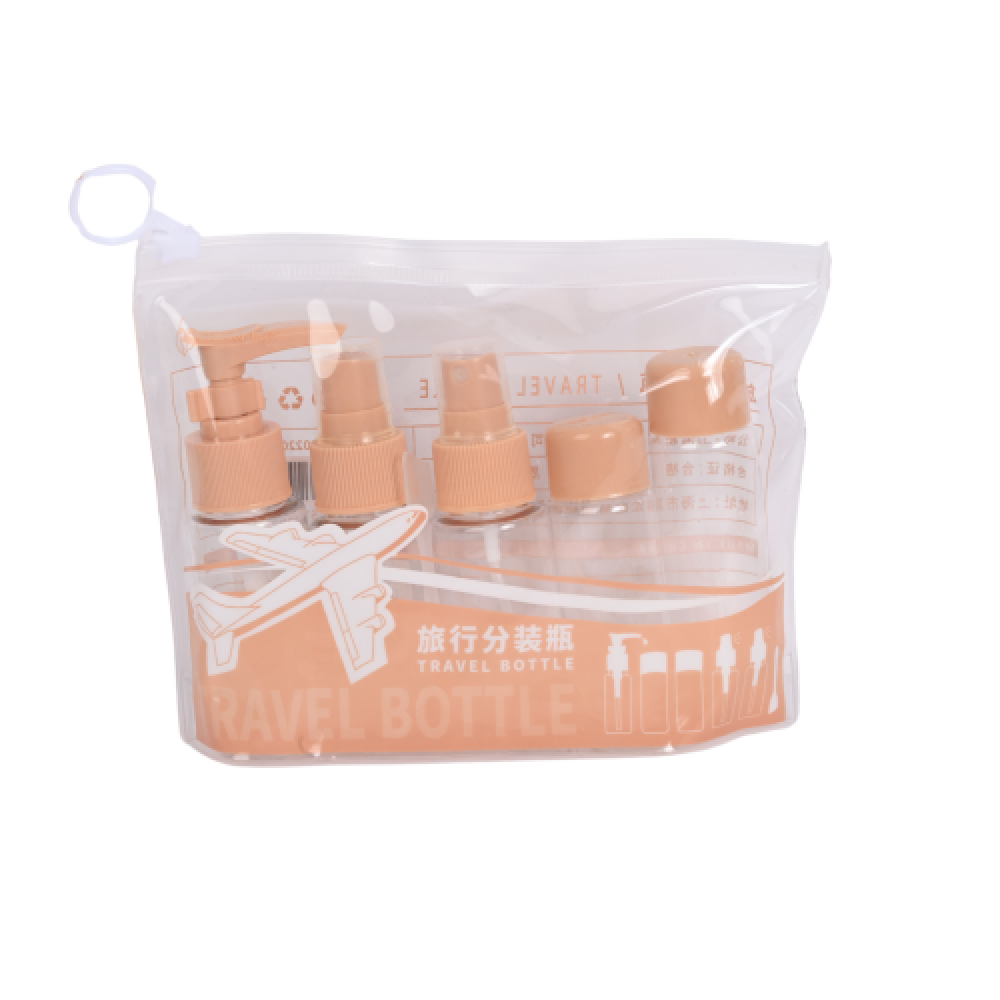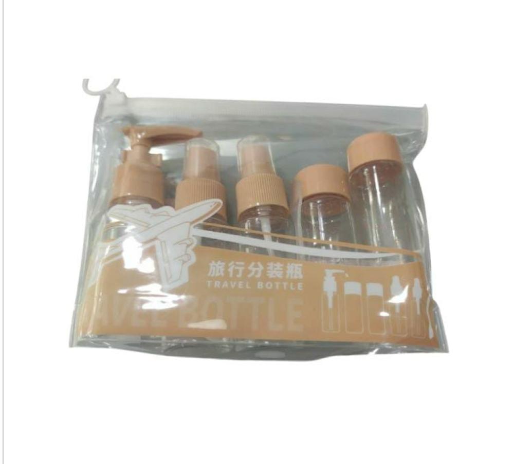 مجموعة زجاجات سفر من 5 قطع مصنوعة من بلاستيك ابيض شفاف من لوازم | مجموعة حافظات محمولة مقاومة للتسرب لادوات التجميل | حافظات معتمدة لمستحضرات التجميل واللوشن بحجم مناسب للسفر بالطيارة