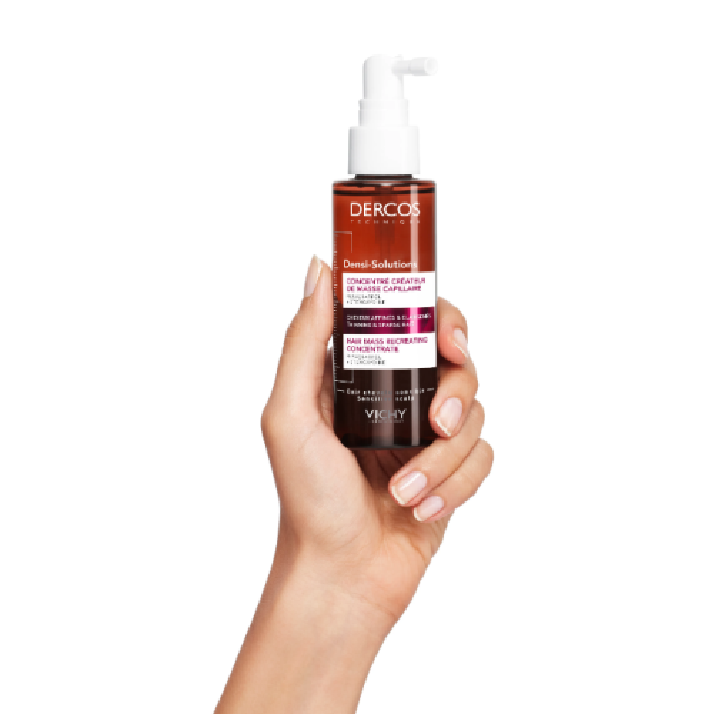 يعمل مركز سماكة كثافة الشعر Dercos Densi-Solutions من فروة الرأس لشعر أقوى وأكثر كثافة. يتكون من Stemoxydine و Resveratrol و Rhamnose و Vitamin E لاستهداف الشعر الخفيف والمتناثر.