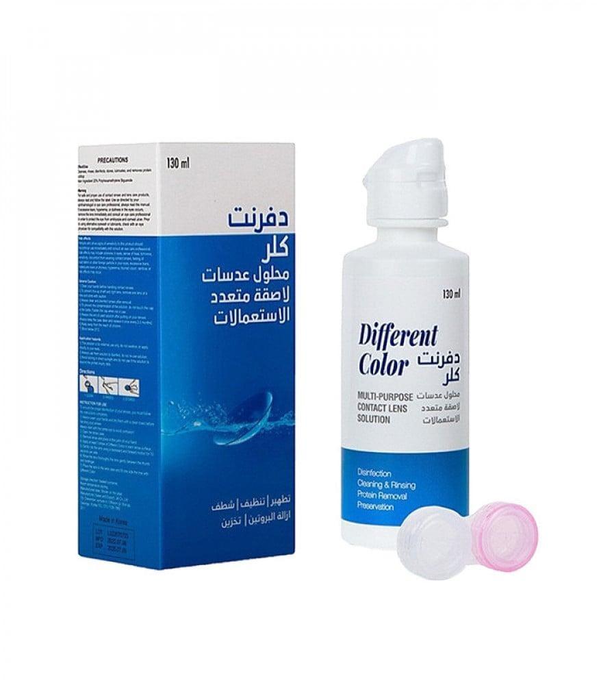 - يعتبر غسول عدسات دفرنت كلر افضل محلول عدسات حيث يعمل على تعقيم العدسة والحفاظ عليها وازالة البروتين وتنظيفها وترطيبها.