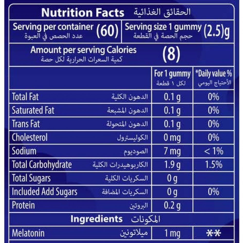 - يحتوي Mothernest الميلاتونين على 60 علكة غنية بالميلاتونين.