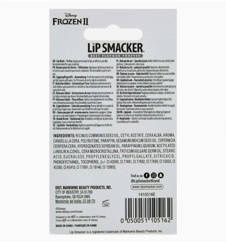 يوضع مرطب الشفاه بسخاء على الشفاه كلما أردت. يوصى بها للأعمار من 6 سنوات فما فوق. مع توت العليق الأزرق الشمالي.