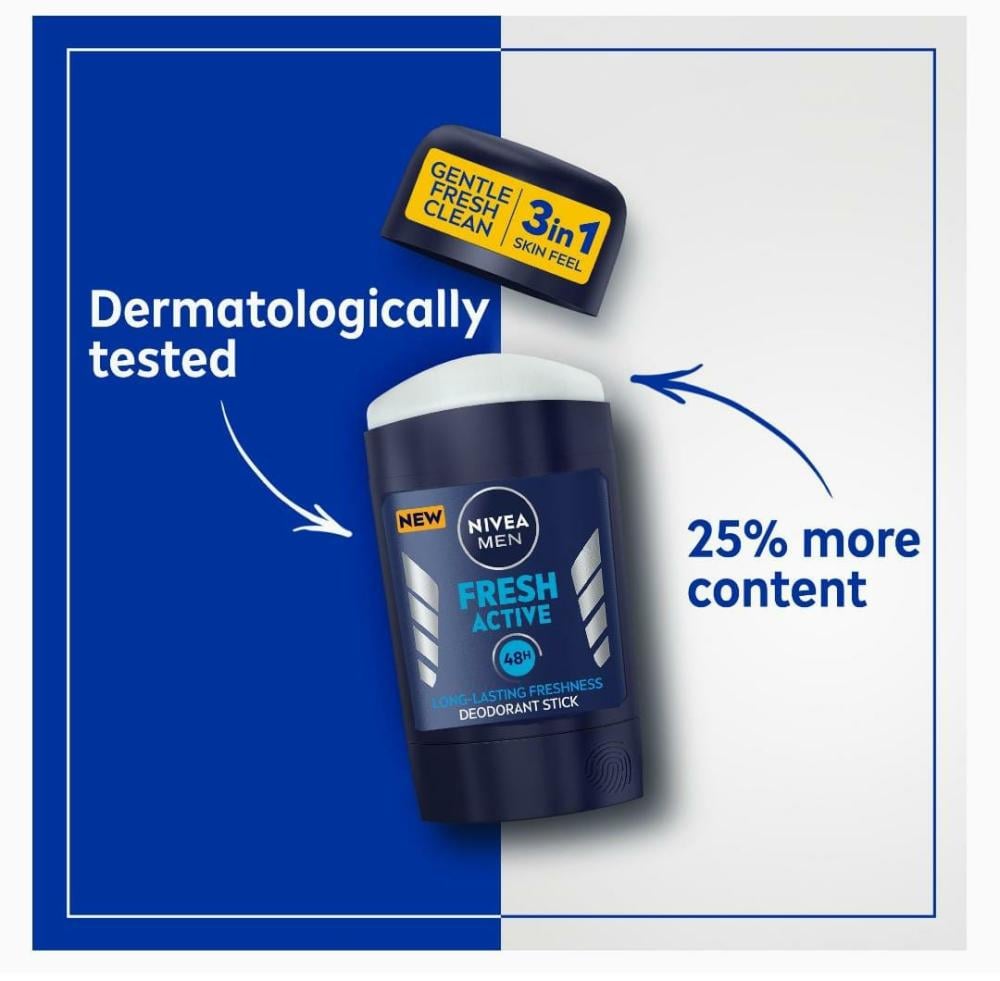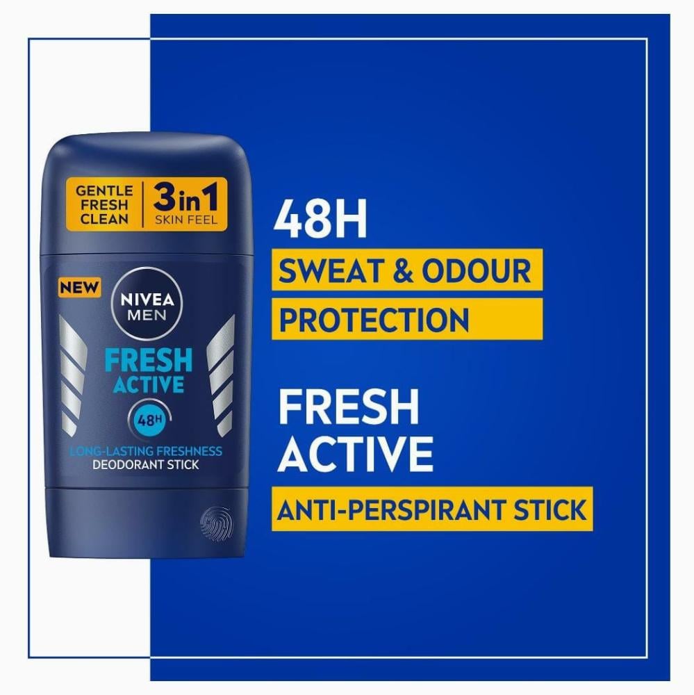 مضاد للتعرق فريش اكتيف للرجال من نيفيا هو تركيبة فريدة تمنحك نضارة طبيعية طوال اليوم وحماية تدوم طويلًا.