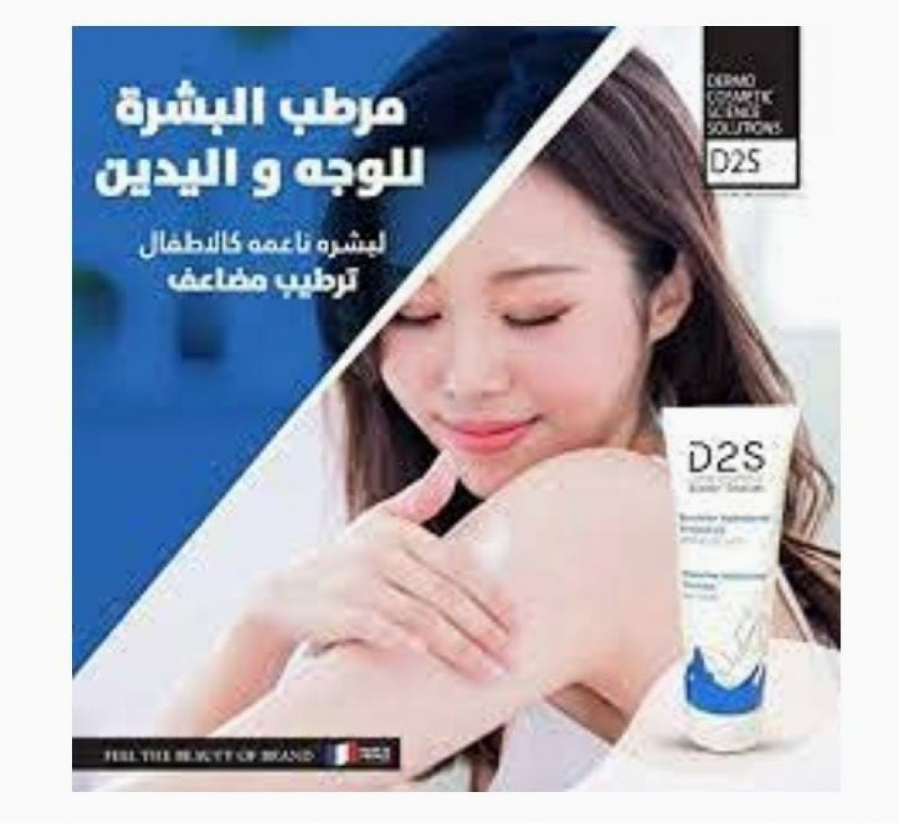 دي تو اس مستحلب ترطيب البشرة الجافة بملمس غير دهني الذي يعمل على ترطيب البشرة الجافة وحمايتها من الجفاف وتغذيتها بفضل الجلسرين الذي يمد البشرة بترطيب مضاعف وحمض اللينوليك، كما يحتوي على فيتامينE الذي يحافظ على نضارة البشرة ويحارب ظهور التجاعيد، بالإضافة لزيت اللوز الذي يساعد على إفراز الكولاجين لشد البشرة.