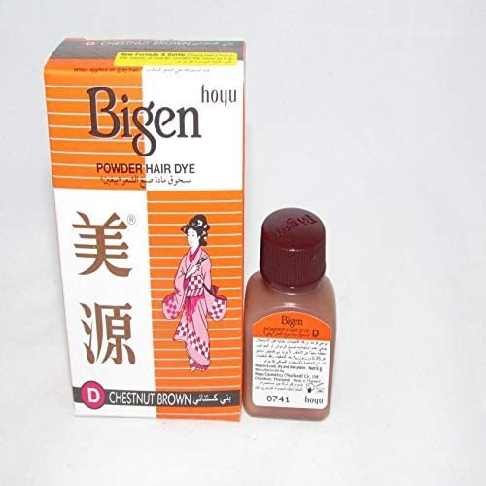 صبغة شعر بيجين صبغة بودرة دائمة (D) بني كستنائي هى صبغة شعر مميزة لتغطية الشعر الرمادي أو تغير لون الشعر الطبيعي. خالية من الأمونيا وتجعل الشعر لامع وناعم لأقصى درجة مهما كان الشعر طويلًا.