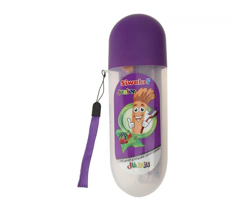 تقدم "سواك اوف" عبوة معجون وفرشاة أسنان للأطفال، بلونٍ بنفسجي ونكهة الفواكه التي يعشقها الصغار.