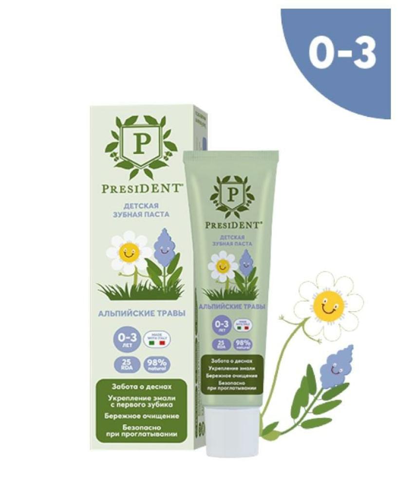 معجون أسنان بريزدنت 0-3 بأعشاب جبال الألب. President