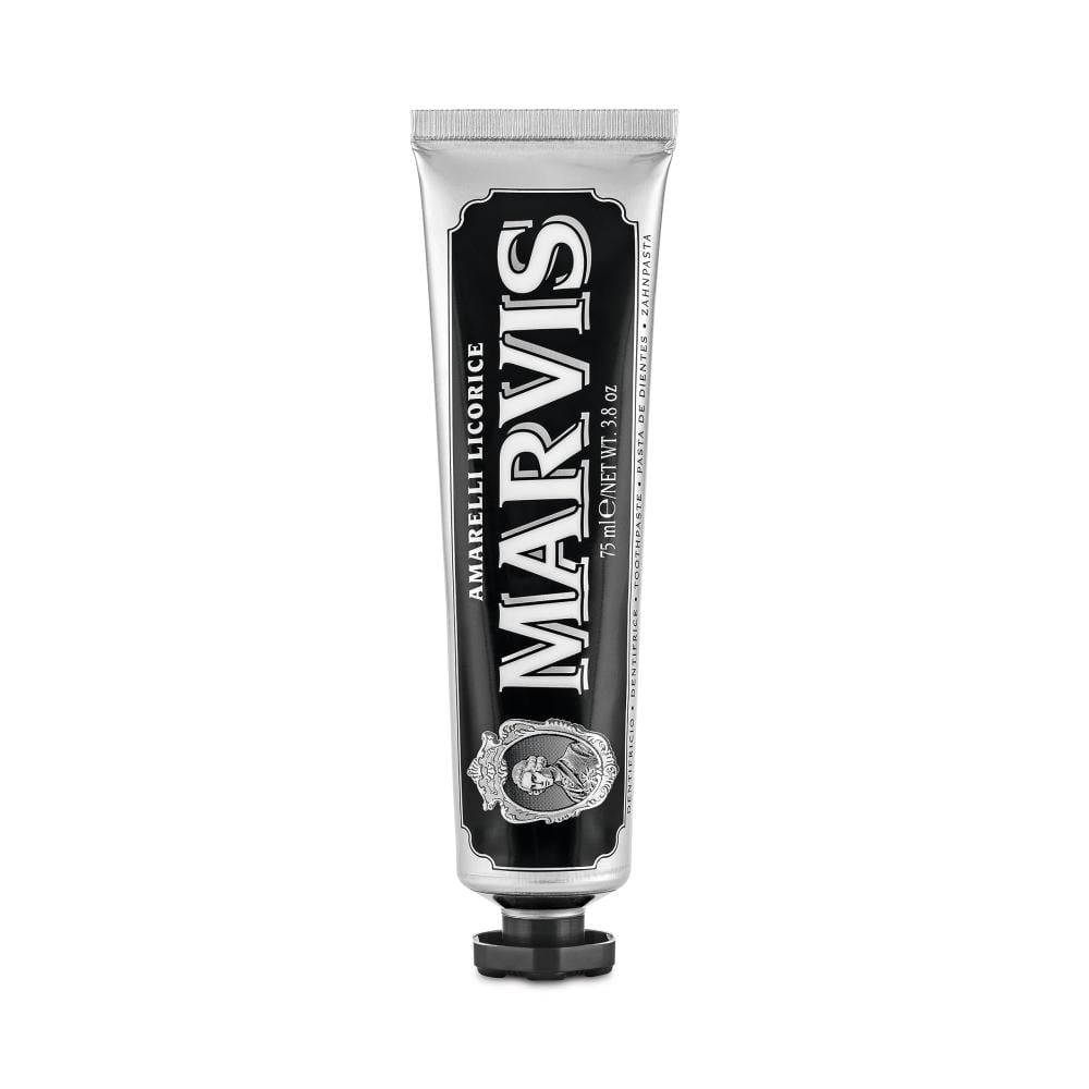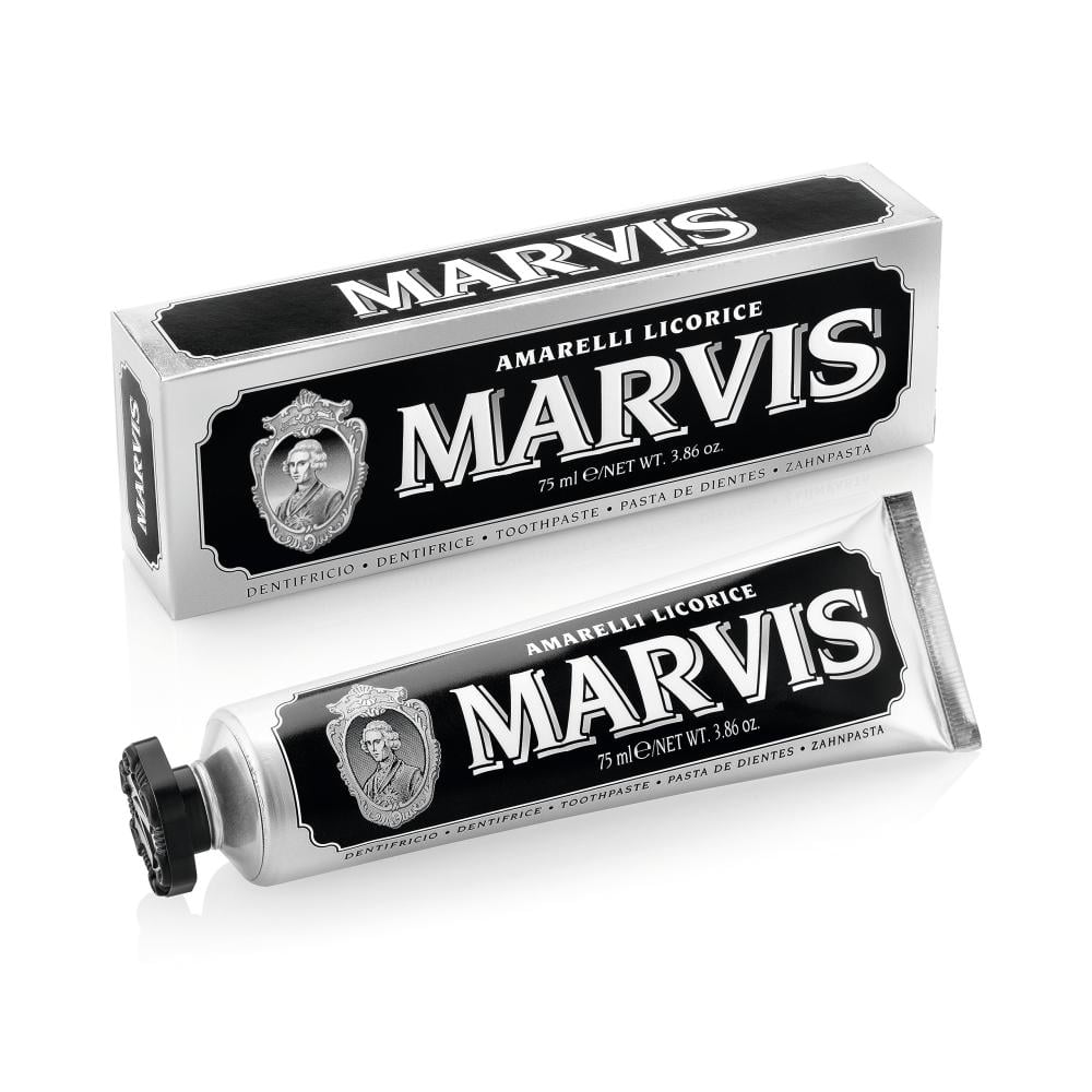 غيِّر مظهر ابتسامتك وعادات تنظيف الأسنان باستخدام معجون أسنان عرق سوس بالنعناع من مارفيس الإيطالية الفاخرة المختصة، كريمي منعش بنكهة اليانسون والنعناع الفريدة التي لتبيض وحماية الأسنان مع نفس منعش. تم تطويره للحفاظ على صحة الأسنان واللثة مع منع التسوس، ويستخدم معجون الأسنان تركيبة لطيفة من الزيليتول والسوربيتان لتنظيف الأسنان وترطيبها دون تهيج. جرِّب صحة فم رائعة ومثالية.