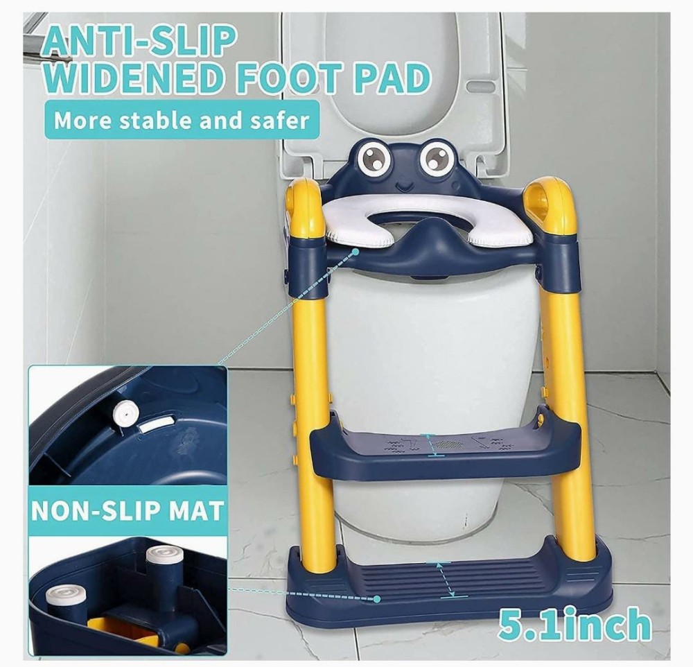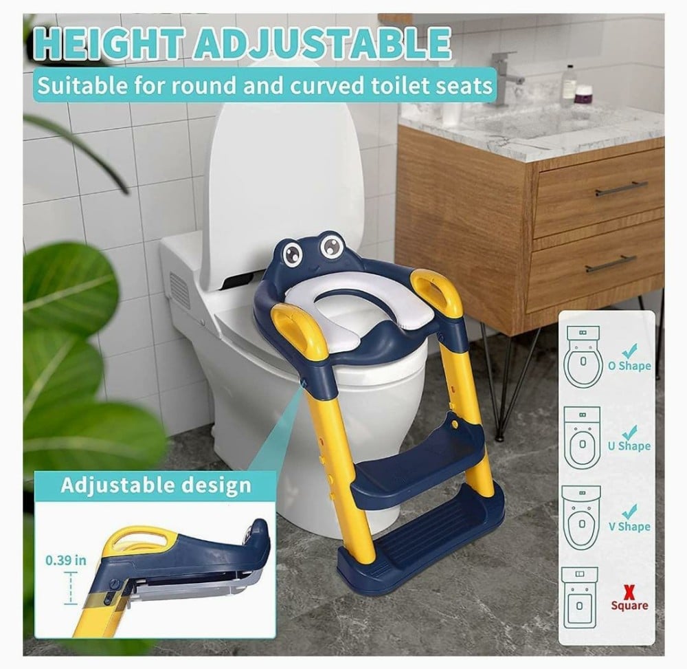 سلم المرحاض هذا مصنوع من مادة البولي بروبيلين عالية الجودة، وهي متينة ومتينة؛ المقعد مصنوع من مادة البولي يوريثان الآمنة والصديقة للبشرة، وهي ناعمة ومريحة ومناسبة للأطفال من سن 1 إلى 7 سنوات.