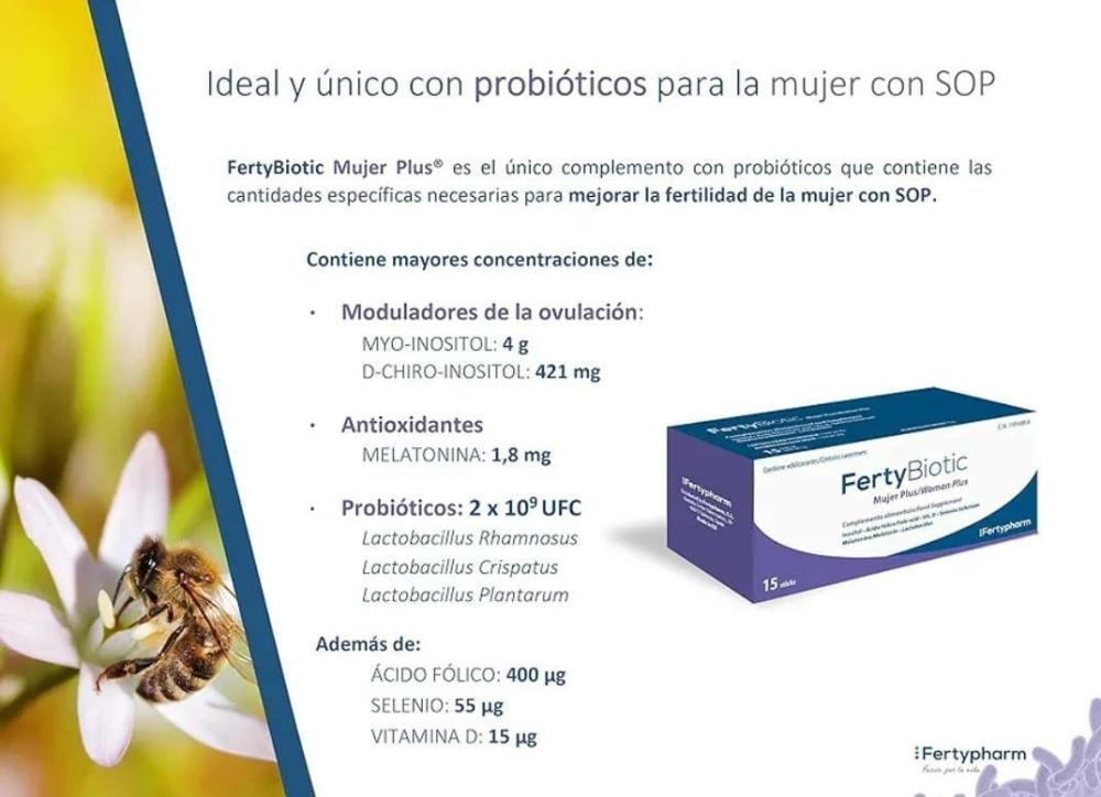 FertyBiotic Woman Plus هو أول مكمل غذائي يحتوي على الفيتامينات والمعادن ومضادات الأكسدة والبروبيوتيك، مما يساعد على تحقيق حالة غذائية مناسبة لدى النساء في سن الإنجاب مع حدوث تغييرات في الدورة الشهرية و/أو الدورة الأيضية.