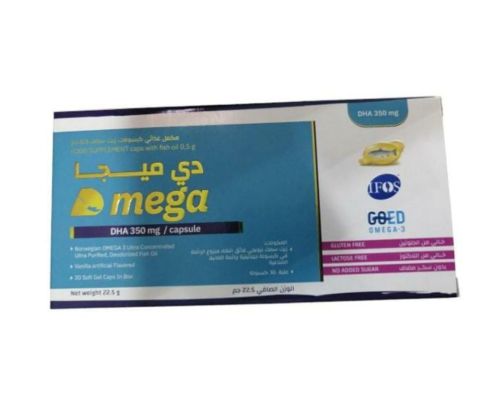 مكمل غذائي كبسولات زيت السمك دي ميجا _ 30 كبسولة D mega