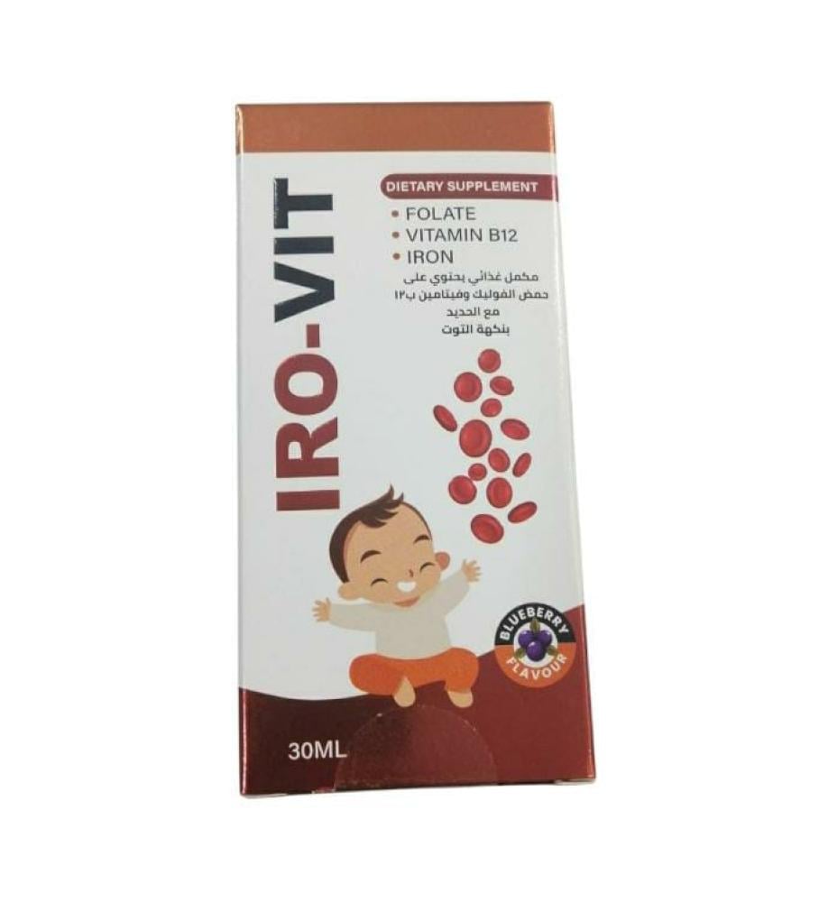 مكمل غذائي يحتوي على حمض الفوليك وفيتامين ب12 مع الحديد بنكهة التوت _ 30 مل IRO _ VIT