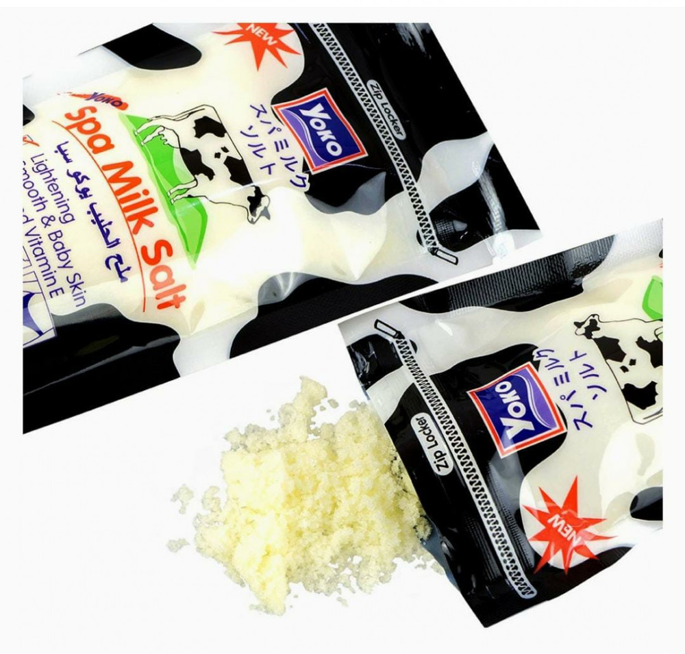 مقشر الجسم يوكو ملح الحليب الشهير هو عبارة عن سبا ميلك سولت من الملح الطبيعي و الحليب الصافي يعمل على تقشير بشرتك و تفتيحها وتبييضها وتغذيتها. هذا الملح يحتوي على معادن مفيدة وفيتامين إي E يعمل على إزالة الاوساخ والرواسب وخلايا البشرة الميتة عن جسمك وينعمه ويعطيه لمعان و ترطيب مميز. ملح الحليب يوكو سبا يفتح بشرتك ليمنحك مظهراً اكثر تألقاً ونضارة وحيوية عن طريق اظهار جلدك الطبيعي المنتعش المشرق الذي كان مغطى بالخلايا الميتة والاوساخ التي تتراكم مع الحياة اليومية. استخدميه عن طريق فركه بين يديك اولاً بلطف ثم ضعيه على بشرتك الرطبة وافركيه بشكل دائري. بعد ذلك اتركيه لمدة 3 دقائق تقريباً قبل ان تشطفيه وتزيليه بالماء النظيف كي تنعمي ببشرة ناعمة فوراً
