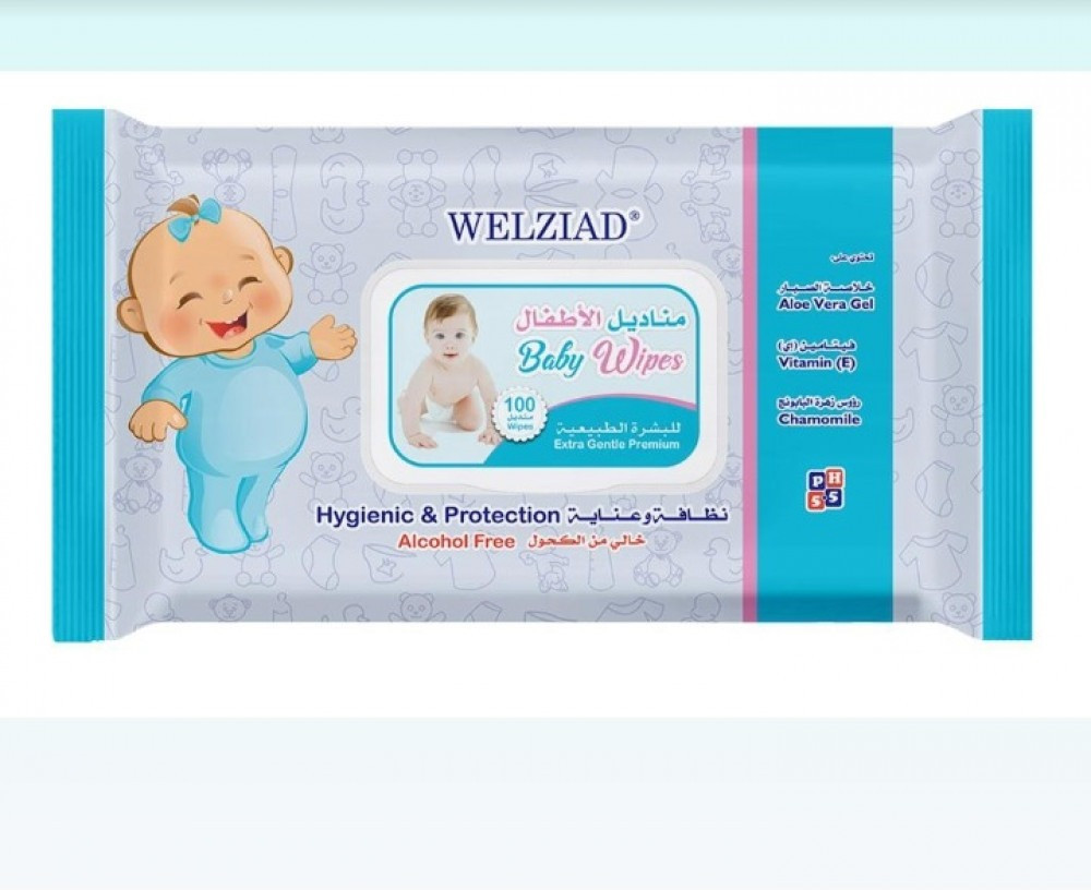 مناديل اطفال 100 منديل للبشرة الطبيعية من ويلزاد welziad