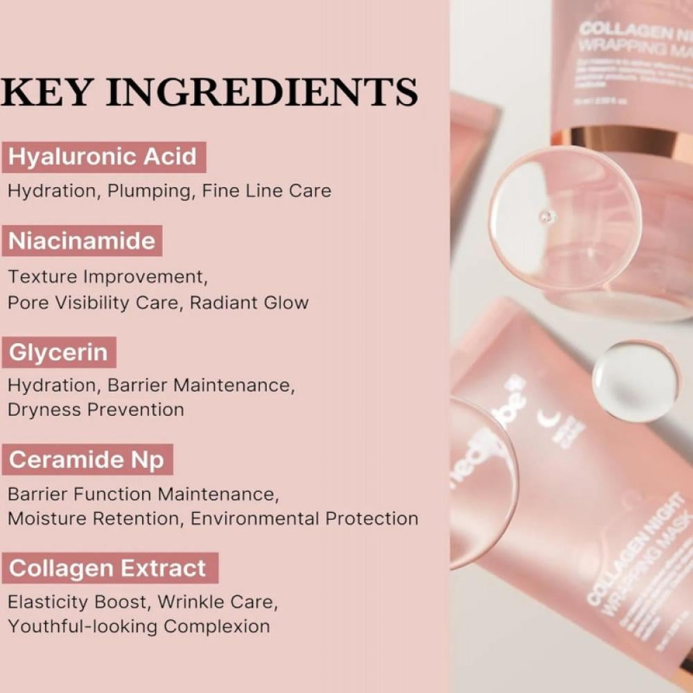 استمتعي بتحول ليلي مع قناع الكولاجين الليلي من ميديكيوب المصمم بعناية للعناية بمرونة بشرتك وحمايتها أثناء النوم.