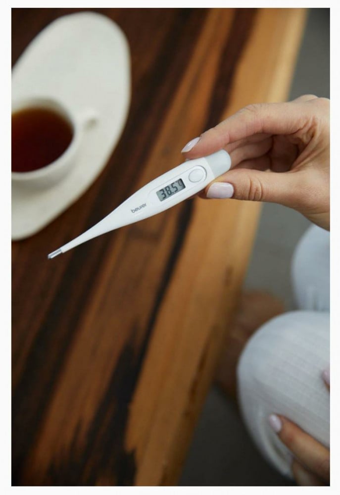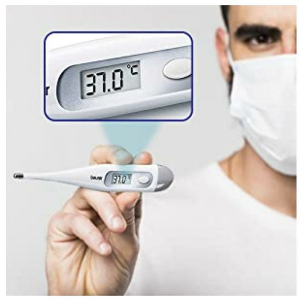 تم اختبار ميزان الحرارة الرقمي Beurer FT09 سريريًا مع قياسات سريعة للغاية في حوالي 10 ثوانٍ. يعرض آخر قيمة تم قياسها. المنتج مقاوم للماء وقابل للتطهير. المزايا: طرف قياس مرن، قياسات سريعة للغاية، نغمة الإشارة في نهاية القياس. غطاء حماية متضمن.