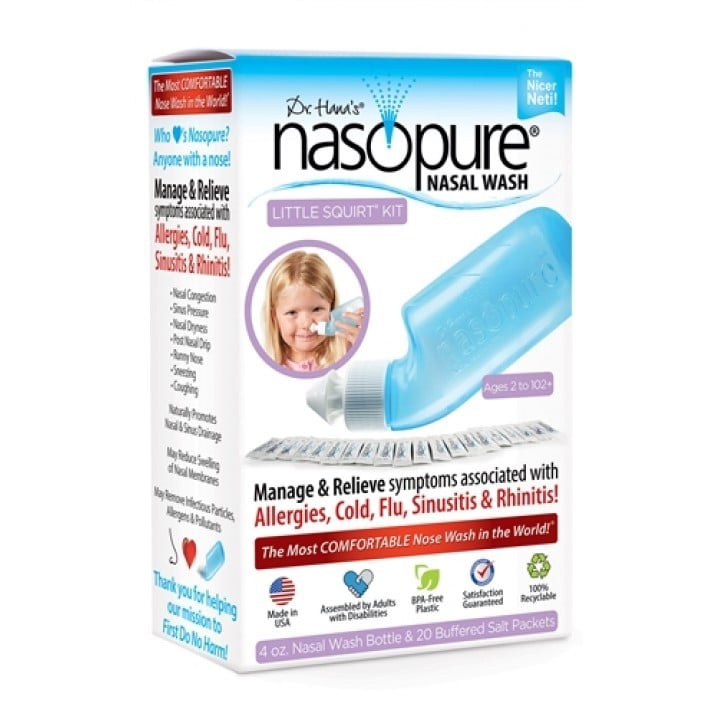 ناسوبيور للأطفال نظامٌ لغسيلِ الأنفِ + 20 كيس ملحٍ متوازنُ الحموضةِ ، يخففُ و يقللُ من الأعراضِ المصاحبةِ للحساسيةِ، الزكام، الأنفلونزا، التهابُ الجيوبِ الأنفيةِ، و التهابُ الأنفِ عند الأطفالِ ، يعززُ بشكلٍ طبيعي الأنفَ و يقللُ من تورمِ الأغشيةِ الأنفيةِ و يزيلُ الجسيماتِ المعديةَ، و يزيلُ الموادَ المثيرةَ للحساسيةِ و الملوثاتِ.