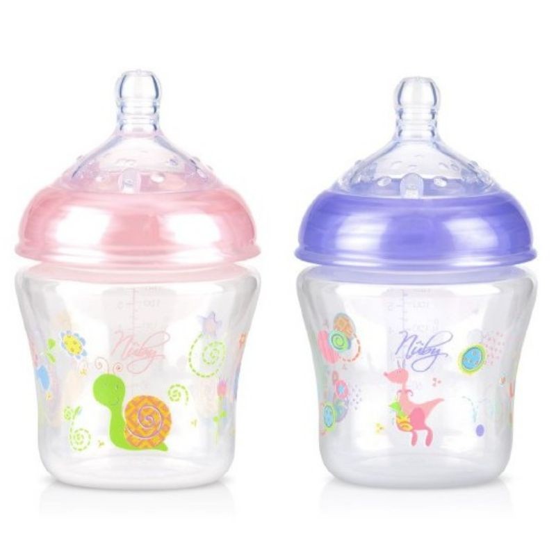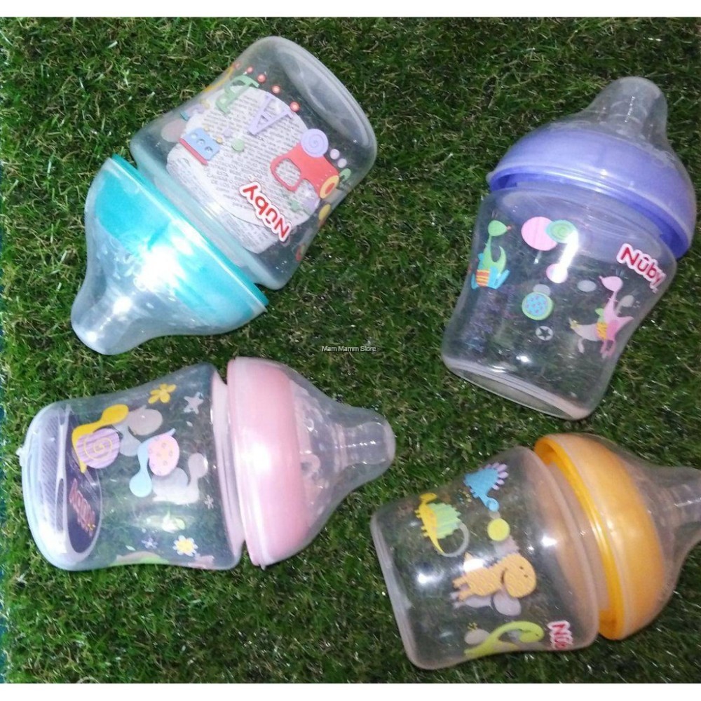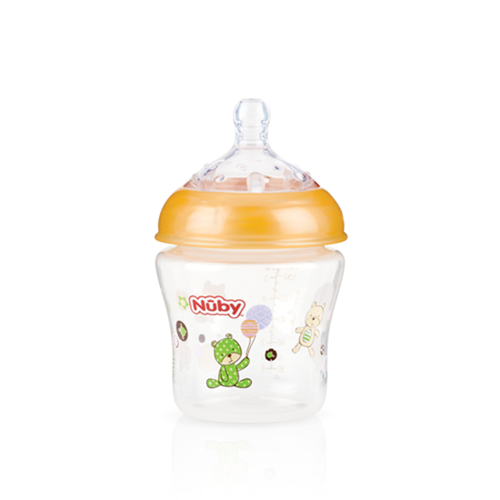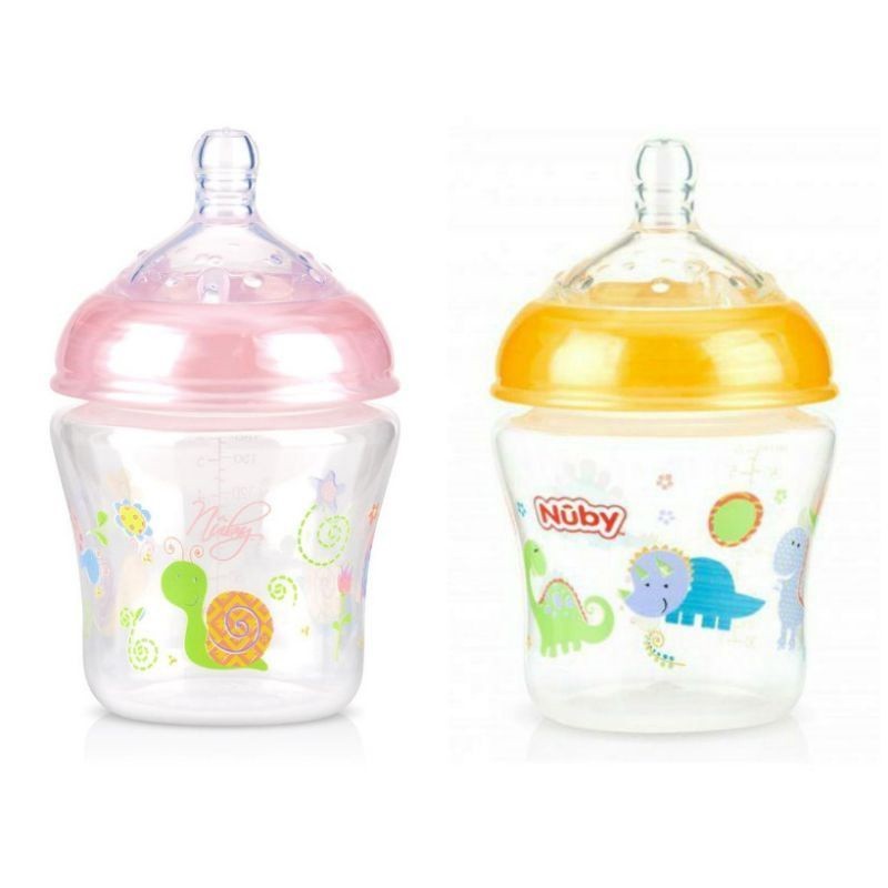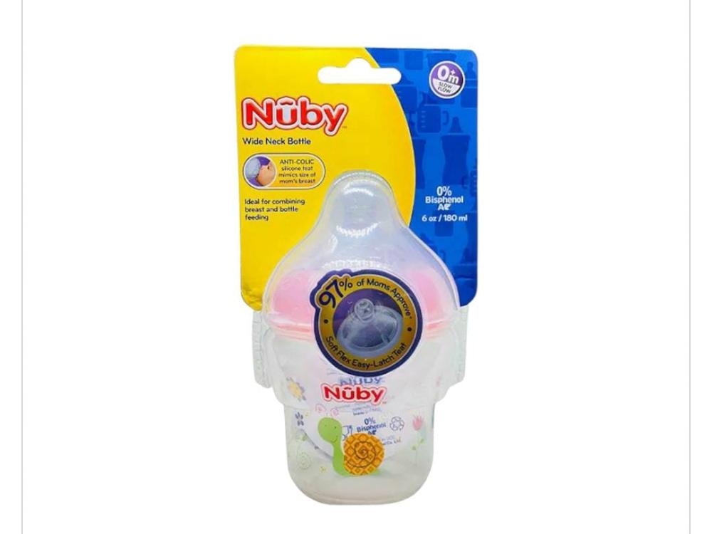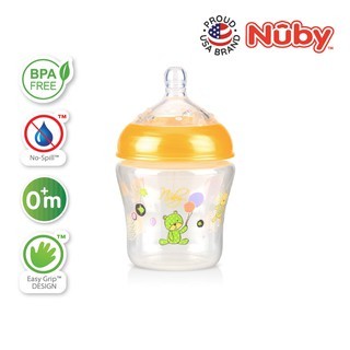 نوبي زجاجة واسعة العنق مطبوعة باللمس الطبيعي مع حلمة سيليكون منذ الولادة فما فوق _ 180 مل ( شكل غير محدد ) Nuby