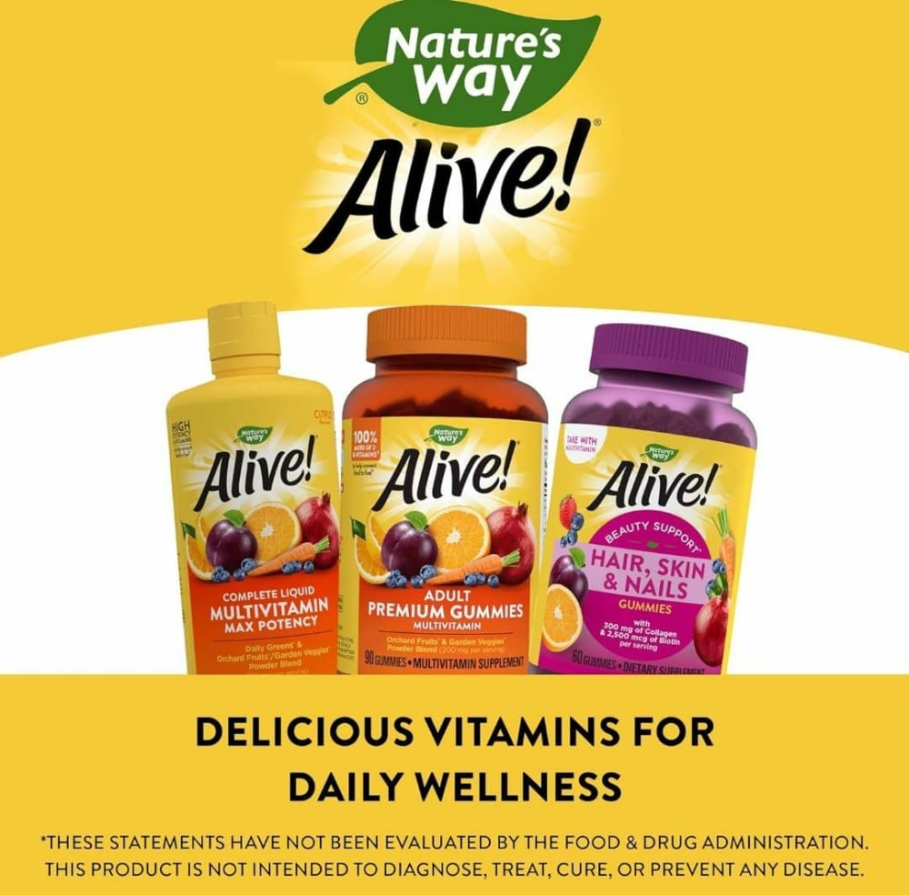 - نيتشرز واي على قيد الحياة! أقراص مضغ للشعر والبشرة والأظافر هي تركيبة تجميل فاخرة للشعر اللامع والأظافر القوية والبشرة النابضة بالحياة. * تناوله جنبًا إلى جنب مع الفيتامينات المتعددة اليومية.
