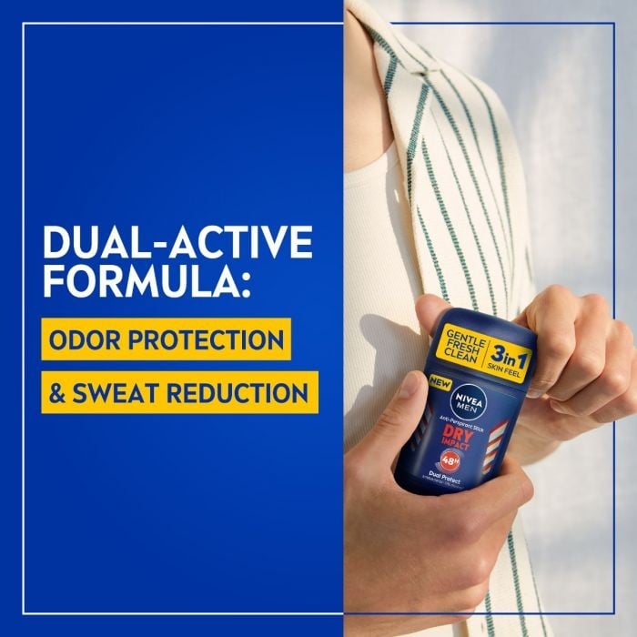 تم تركيبه باستخدام مزيج مثالي من الحماية الموثوقة ضد التعرق لمدة 48 ساعة والعناية الخفيفة من نيفيا ، حيث يعتني مضاد التعرق Nivea MEN Dry Impact ببشرتك ويترك تحت الإبطين يشعر بالجفاف مع الحفاظ على العرق ورائحة الجسم طوال اليوم.