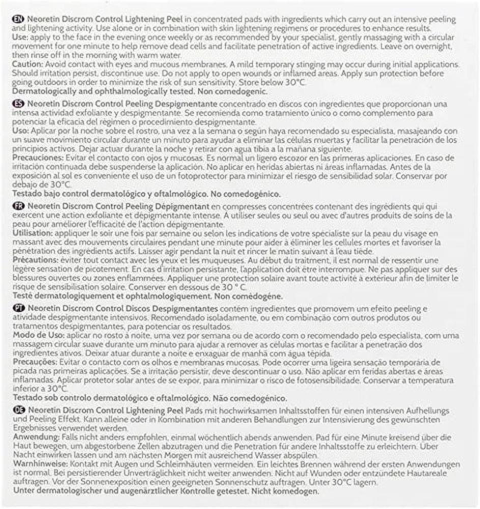 أحدث وافضل منتجات تقشير الوجه مع تركيبة غير كوميدوغينيك مشرّبة في أقراص مركزة، ومصنوعة من ألياف نقية تقلل من تفاعلات الحساسية. حيث تعمل وسادات تقشير الوجه من نيوريتين على إزالة الطبقة الخارجية للبشرة والتخلص من الخلايا الميتة والقشور الجلدية الجافة. لتترك البشرة ناعمة ملساء تبدو بمظهرٍ نضر، وتجعلها مستعدة لامتصاص أي مستحضرات عناية أخرى أو مواد تجميلية بمنتهى السلاسة.