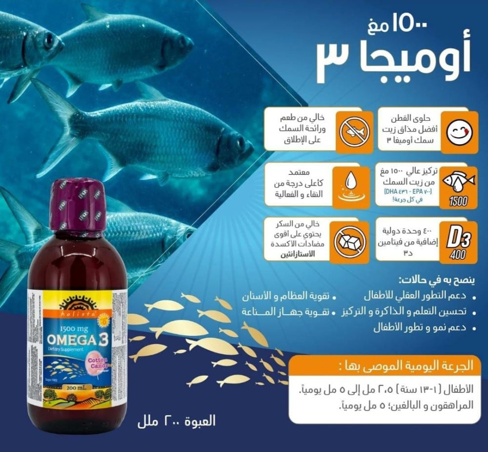 مصدر غني بأحماض أوميجا ٣ الدهنيه التي تساهم في المحافظه علي الوظيفه الطبيعيه للدماغ والمحافظه علي النظر الطبيعي . كما ان استهلاك الامهات المرضعات والحوامل يساهم في النمو الطبيعي لدماغ وعيون الجنين