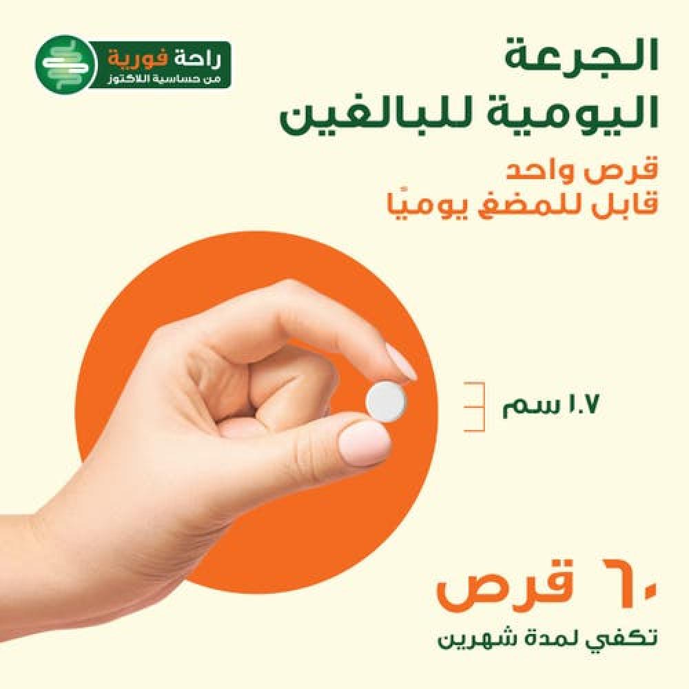 يقدم راحة سريعة ووقائية من أعراض عدم هضم اللاكتوز ، مثل التقلصات، والغثيان، والغازات، والانتفاخ، والإسهال.