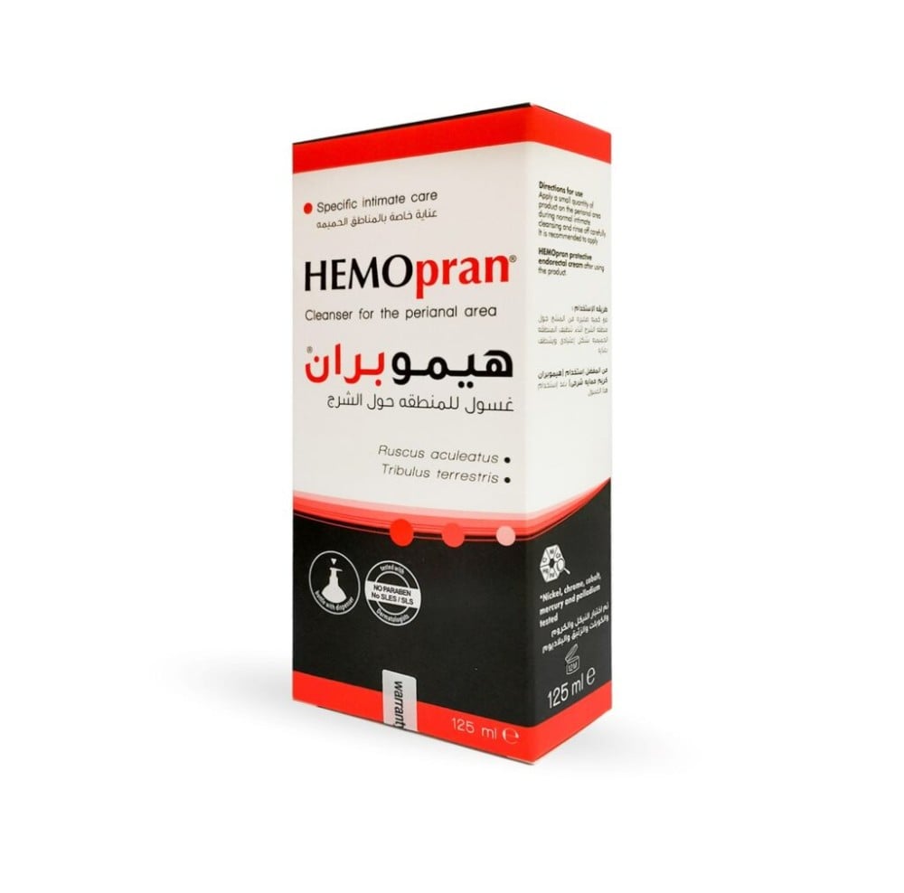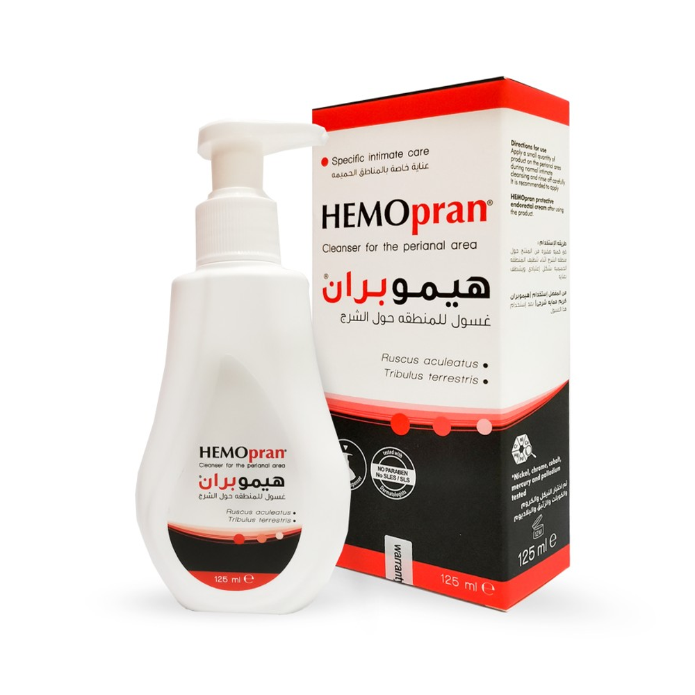 هيموبران غسول للمنطقة المحيطة بفتحة الشرج، بفضل تركيبته ينظف المنطقة الحساسة حول الشرج ويعطي إحساسًا لطيفًا بالانتعاش، ويخفف من الحكة.
