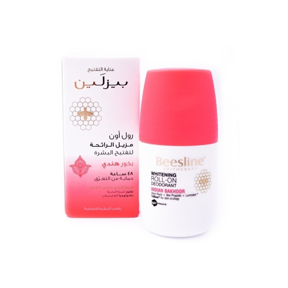 بيزلين رول اون مزيل عرق وتفتيح البشرة برائحة بخور هندي يؤمن لك 4۸ ساعة حماية من التعرق. يعمل مزيل العرق بيزلين بعطر بخور هندي على التحكم بالروائح الكريهة وتهدئة البشرة بعد نزع الشعر وامتصاص العرق بالاضافة لخواص تفتيح البشرة وتقليل مظهر تبقع الجلد واعطاء البشرة الانتعاش برائحة مميزة بعد الاستحمام. يحتوي بيزلين مزيل عرق برائحة عود هندي على التفلور الذي يمنع ظهور الروائح الكريهة بينما يحافظ على البيئة الجلدية فهو يمنع تكون البكتيريا المسببة لظهور الروائح ويعمل كحاجز دفاعي ضدها ويهدئ البشرة بعد ازالة الشعر وبودرة حجر الشبة لتمتص الروائح والعرق وصمغ النحل الذي يزيل الروائح التي تسببها البكتيريا و لومي سكين الذي يعمل على تفتيح البشرة ويقلل من البقع الداكنة بالإضافة إلى الالوفيرا لتهدئة البشرة الحساسة. مزيل العرق بيزلين آمن وفعال، يساعد في الحصول على بشرة أفتح، أنقى وأكثر انتعاشاً تحت الذراعين.
