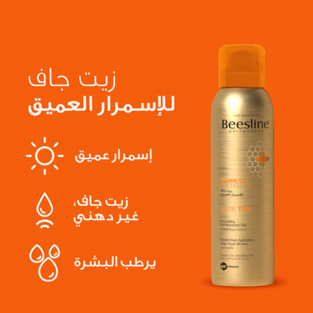 زيت خفيف بتركيبة جافة وغير دهنية، يساعد البشرة على الإسمرار العميق. يقاوم الماء لمدة 45 دقيقة كما يحمي من أضرار أشعة الشمس، يجدد، ينعم ويرطب البشرة.