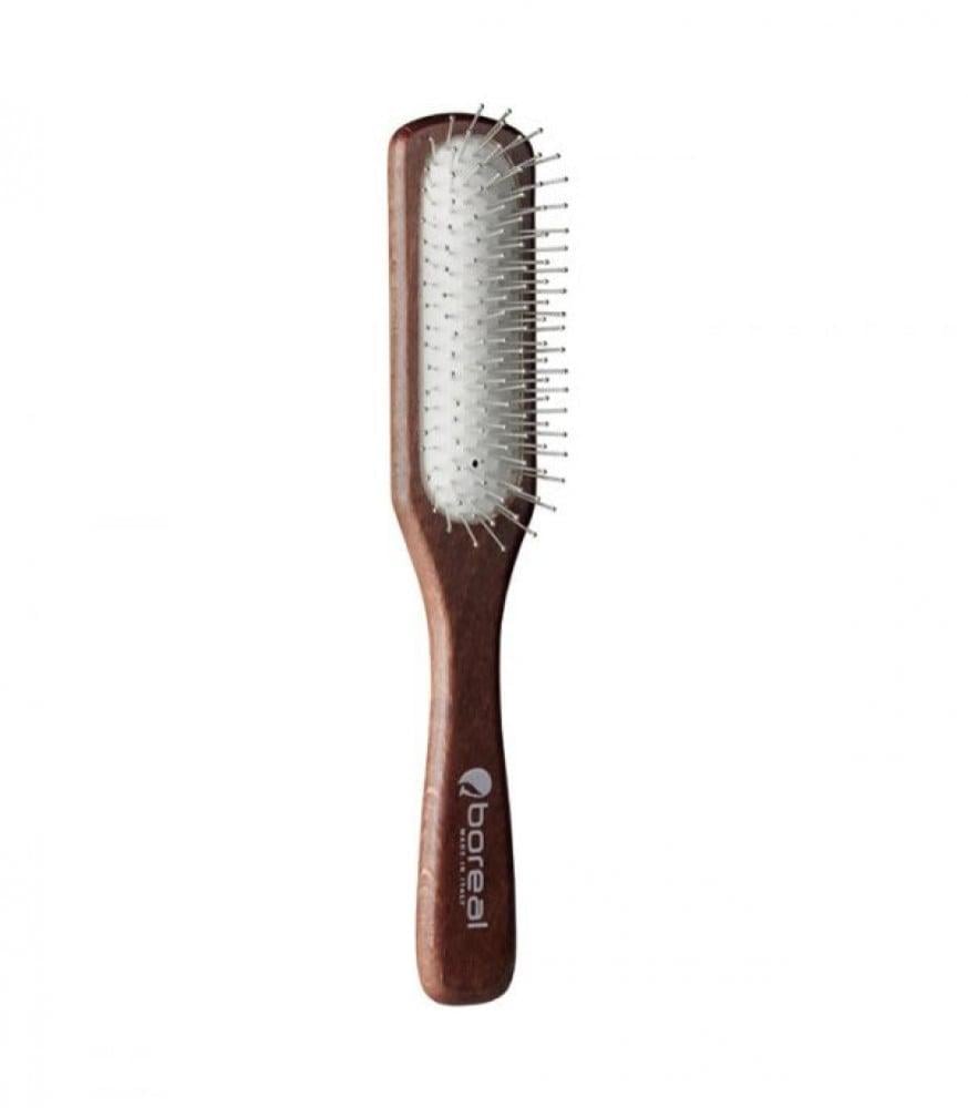 تساعد هذه الفرشاة الخشبية الطويلة الرأس من بوريل على تحفيز الدورة الدموية في بصيلات الشعر لتعزيز نموه وصحته. مقبضها المريح يوفر تحكماً سلساً أثناء التمشيط، بينما تنساب الفرشاة ببراعة عبر الشعر لفك تشابكه بفعالية.