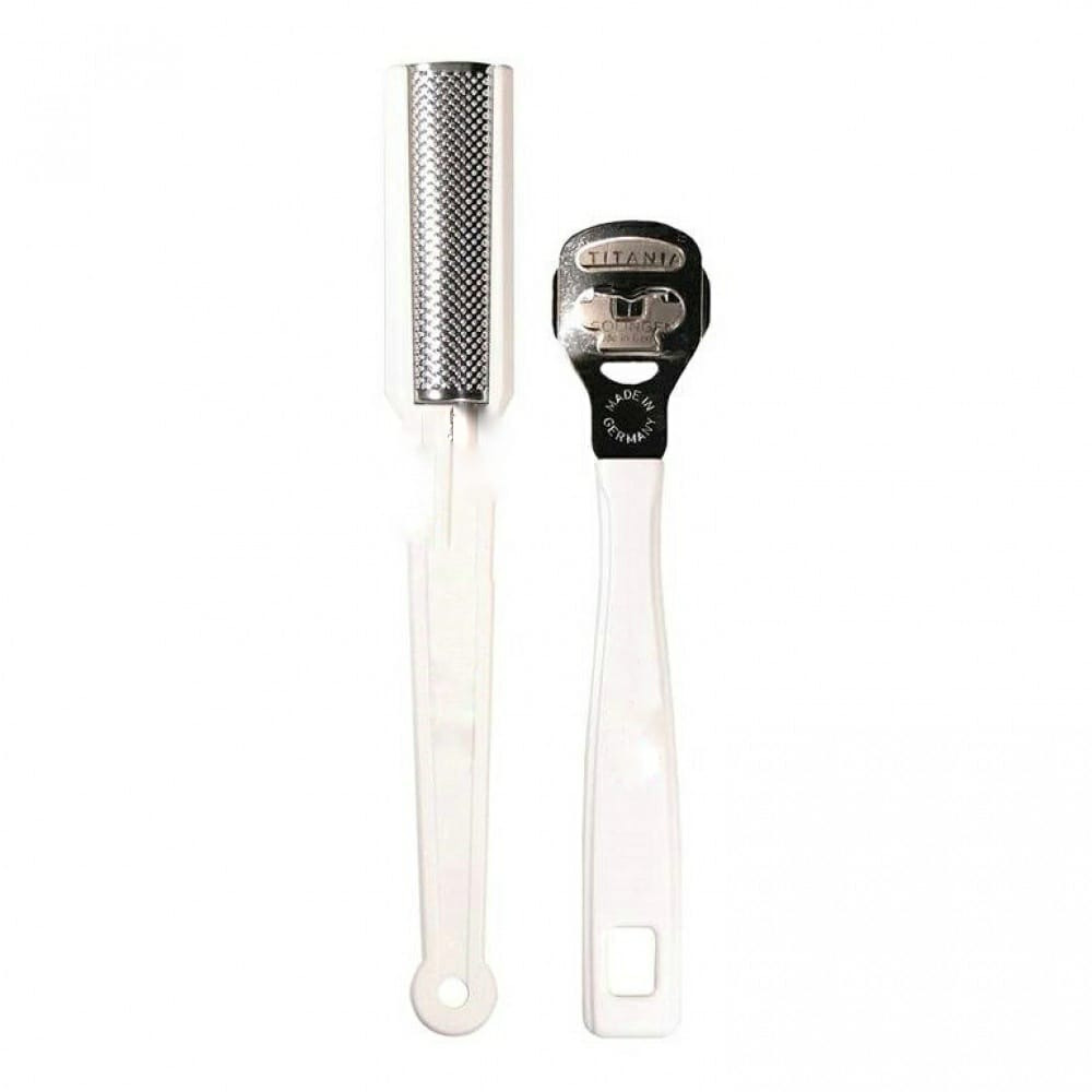 · تحتوي المجموعة على مقشطة ومبرد للقدم.