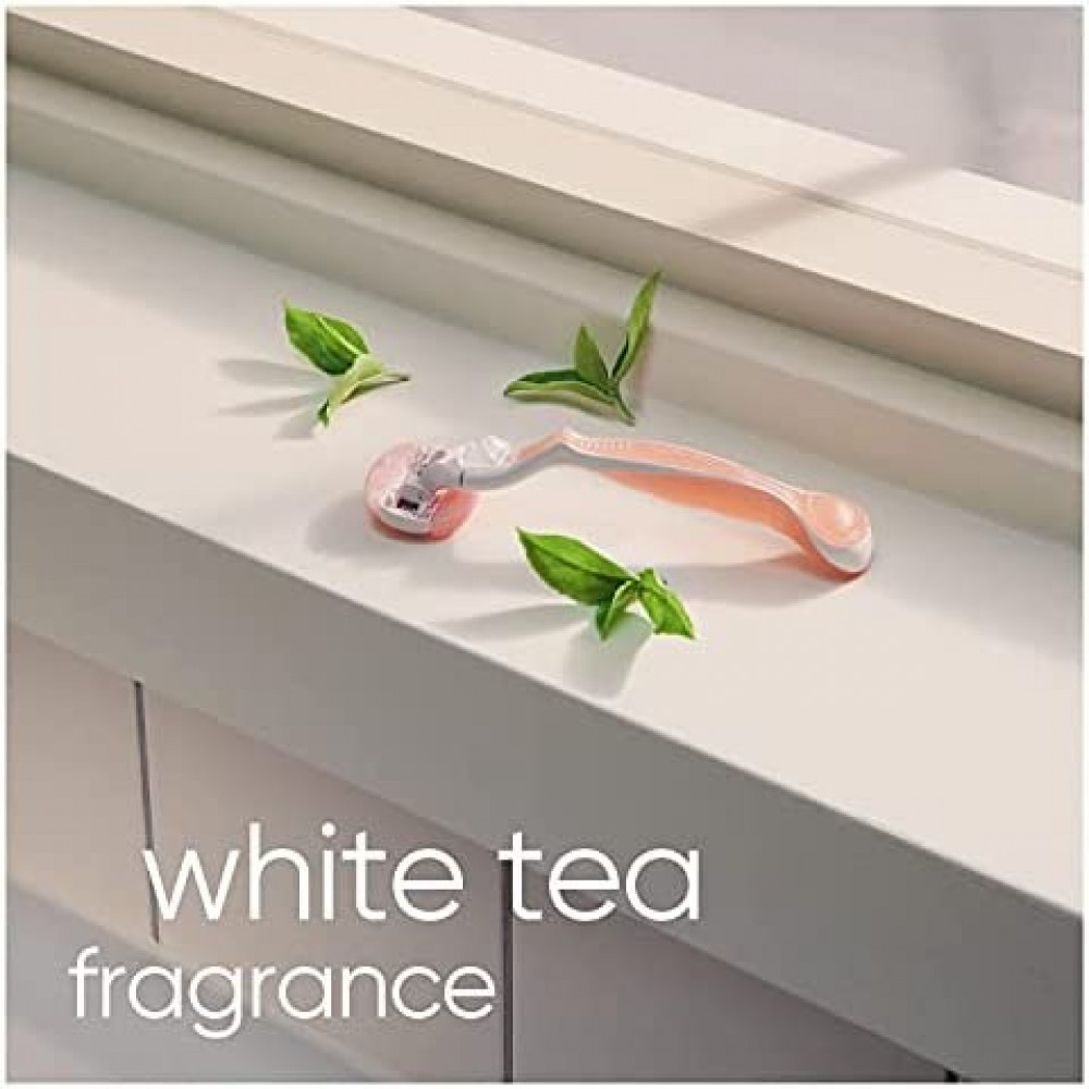 يتميز شاي Venus ComfortGlide White Tea بثلاث شفرات لتعانق المنحنيات لحلاقة ناعمة تمنحك نتائج رائعة.