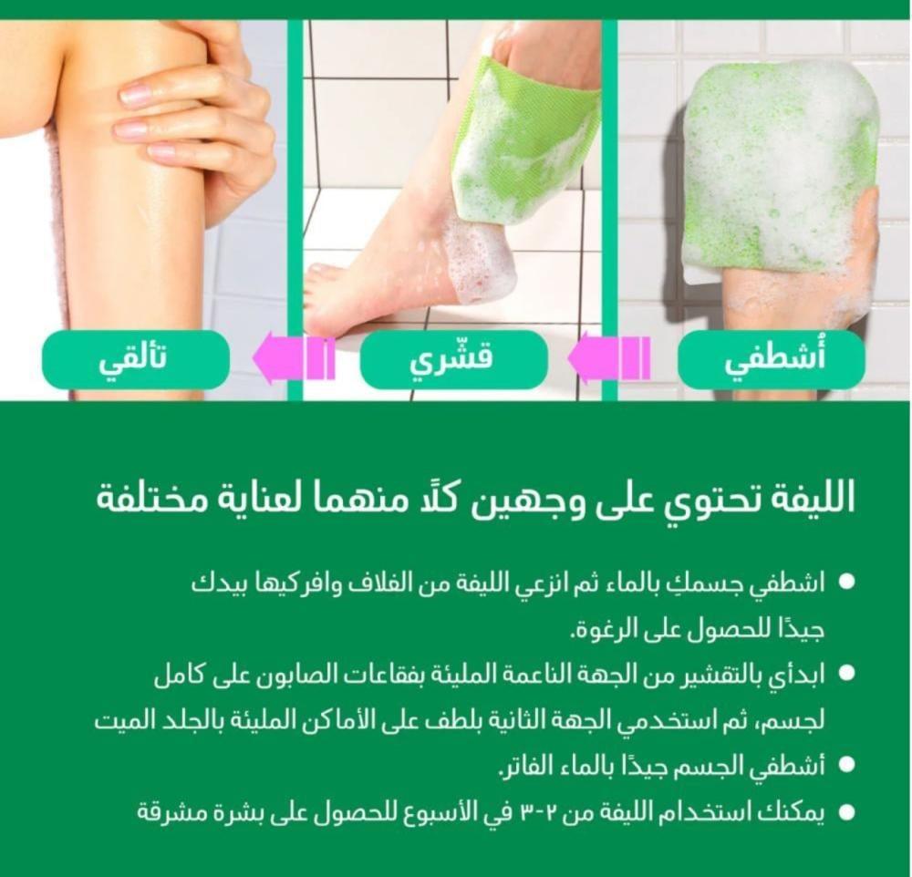 يفرك الجسم بلطف بحركات دائرية، مع التركيز على المناطق الجافة أو الخشنة.