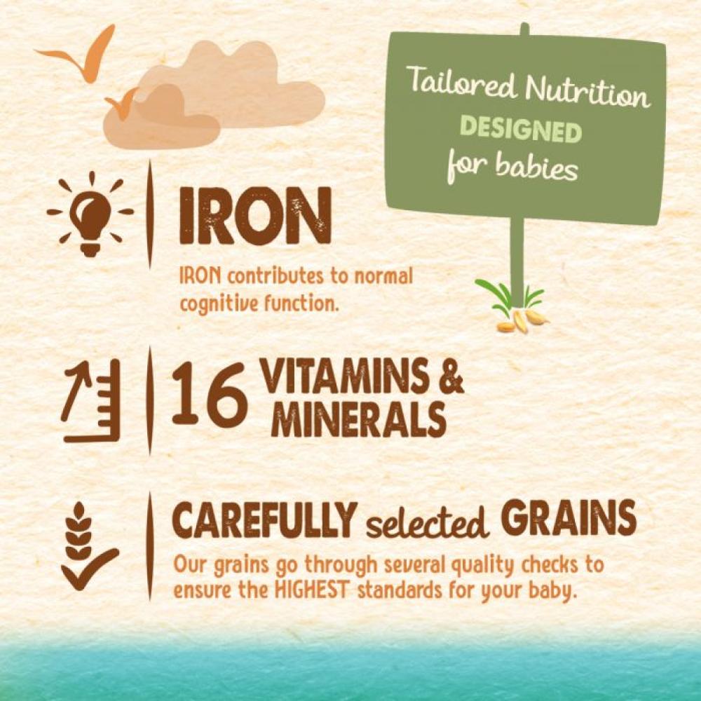 - معزز بالحديد+ والذي يساعد على دعم التطور الذهني والمعرفي .