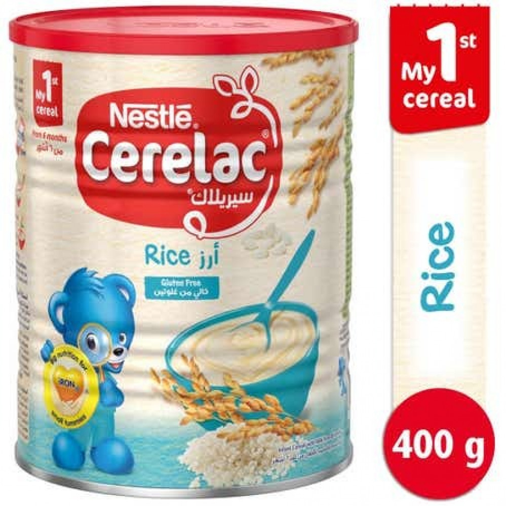 - نستله سيريلاك دقيق الحبوب للأطفال بالحديد والأرز وزن 400غ لطفلكِ بدءًا من عمر 6 أشهر .