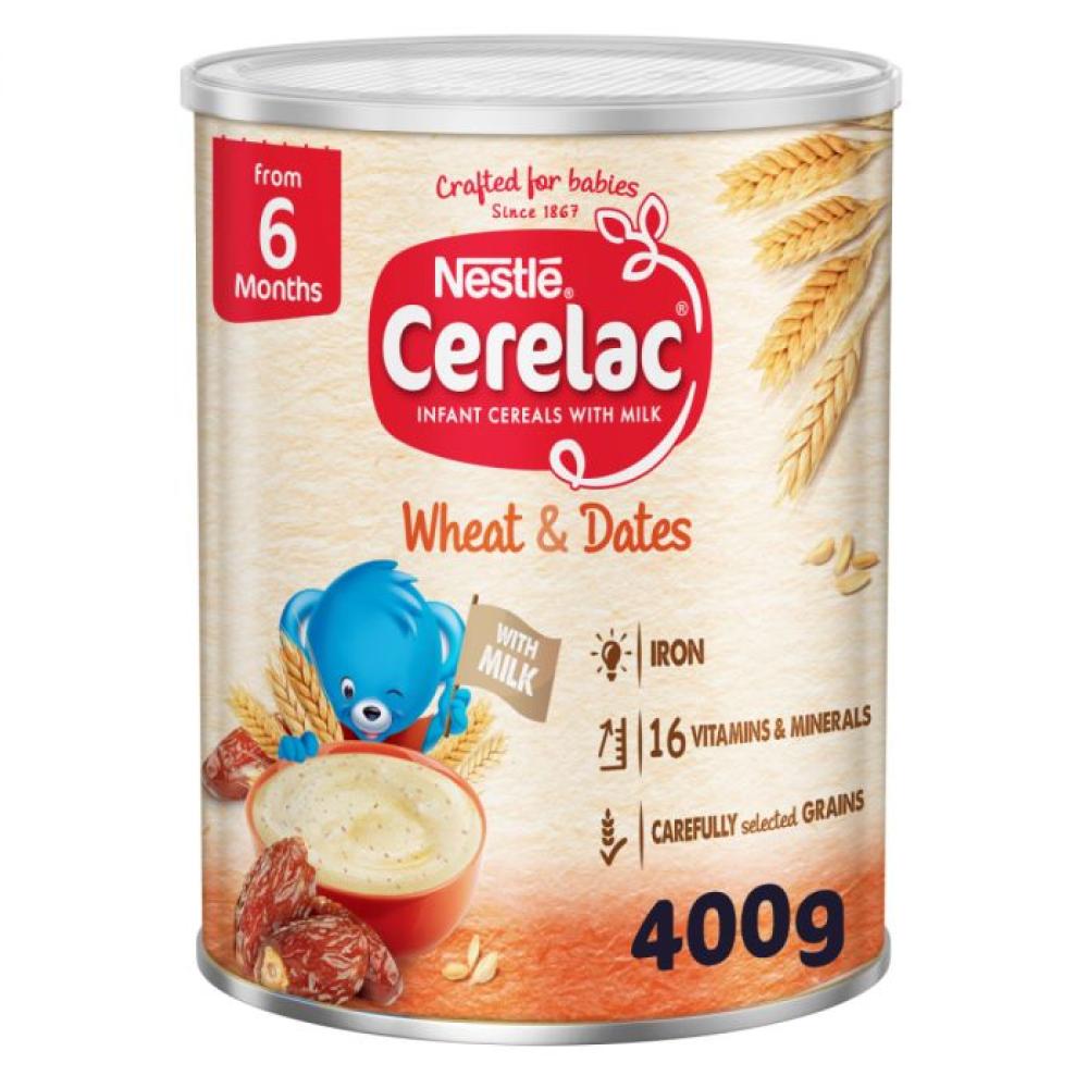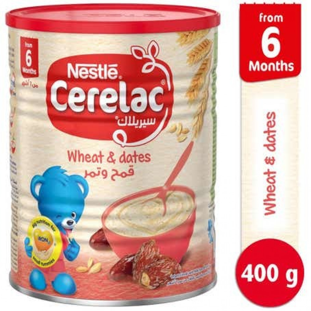 •  نستله سيريلاك دقيق الحبوب للأطفال بالحديد والقمح والتمر وزن 400جم لطفلكِ بدءًا من عمر 6 أشهر